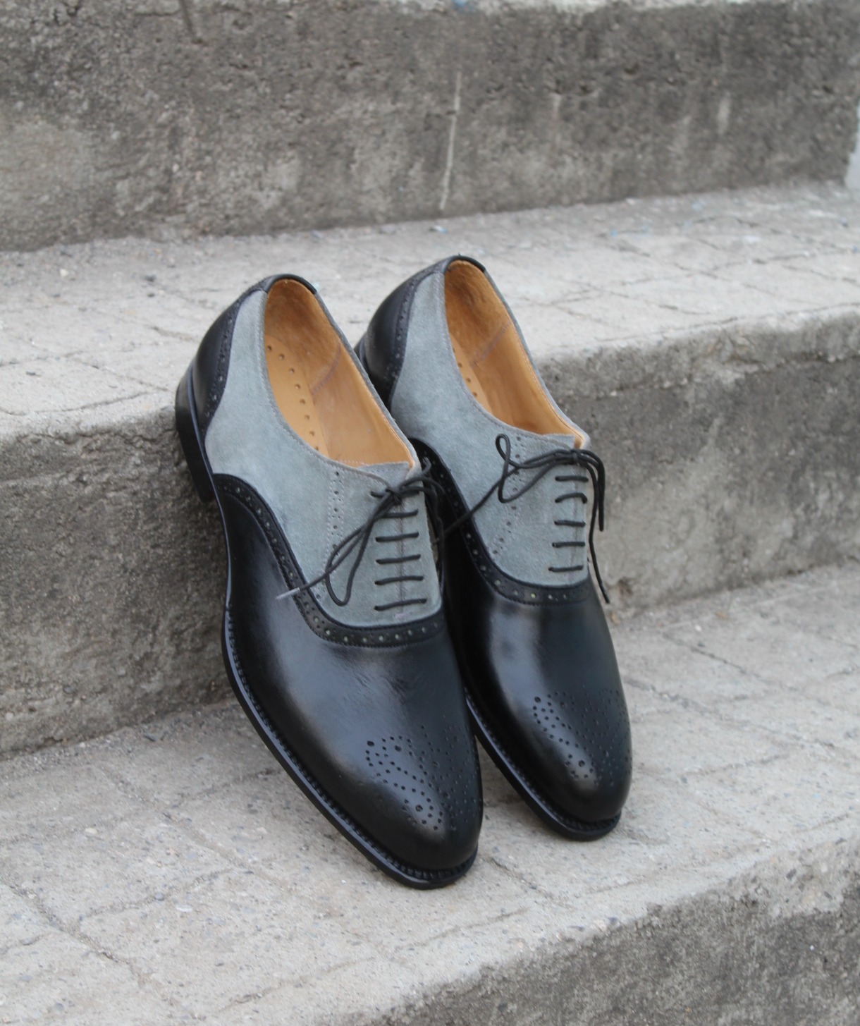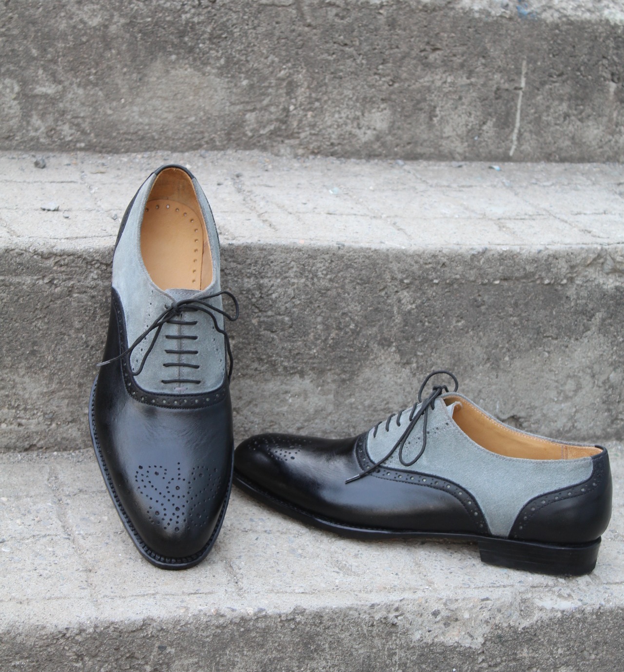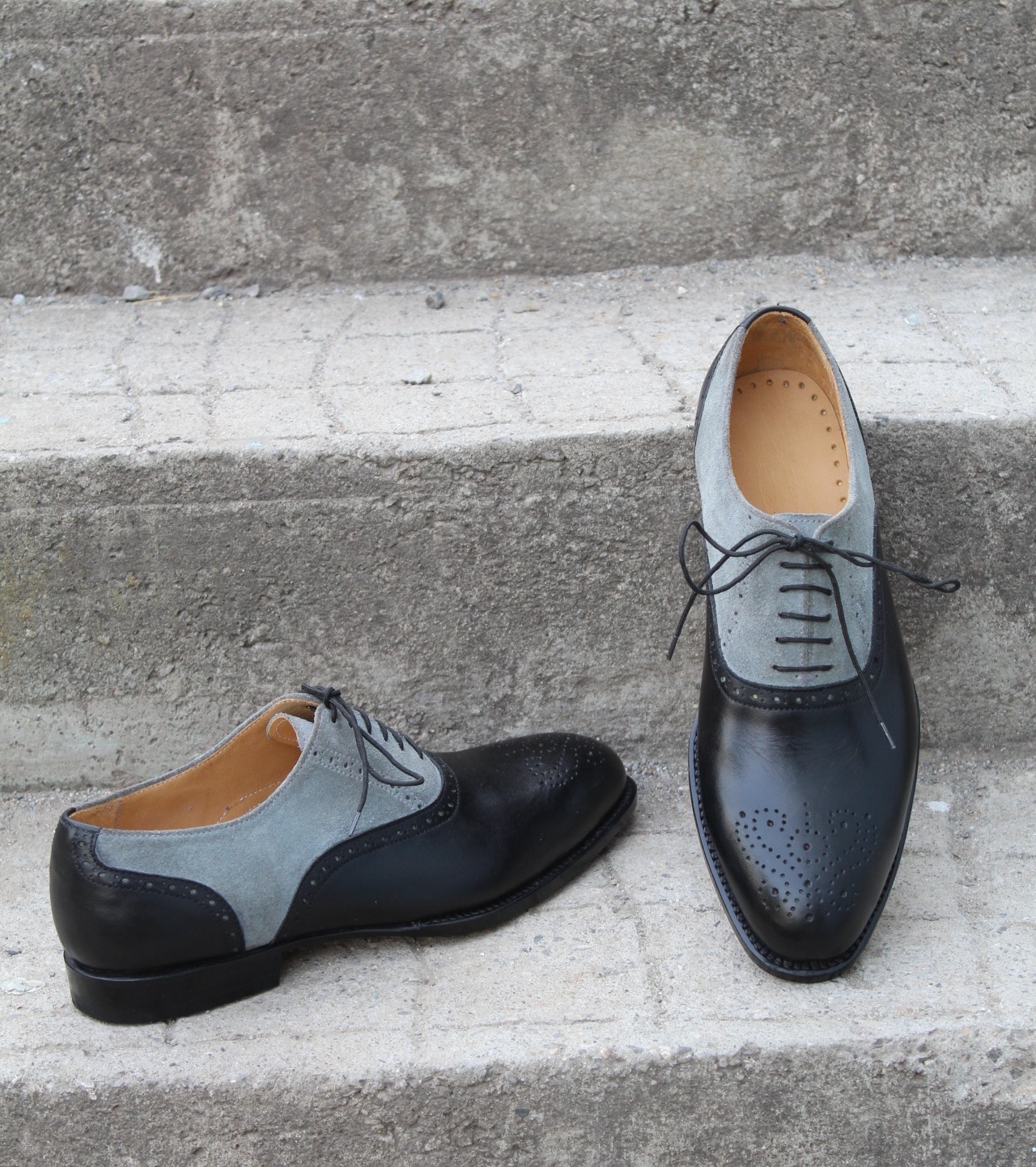 Crafted Leather Men Black Gray Suede Leather Oxford Lace up Dress Shoes