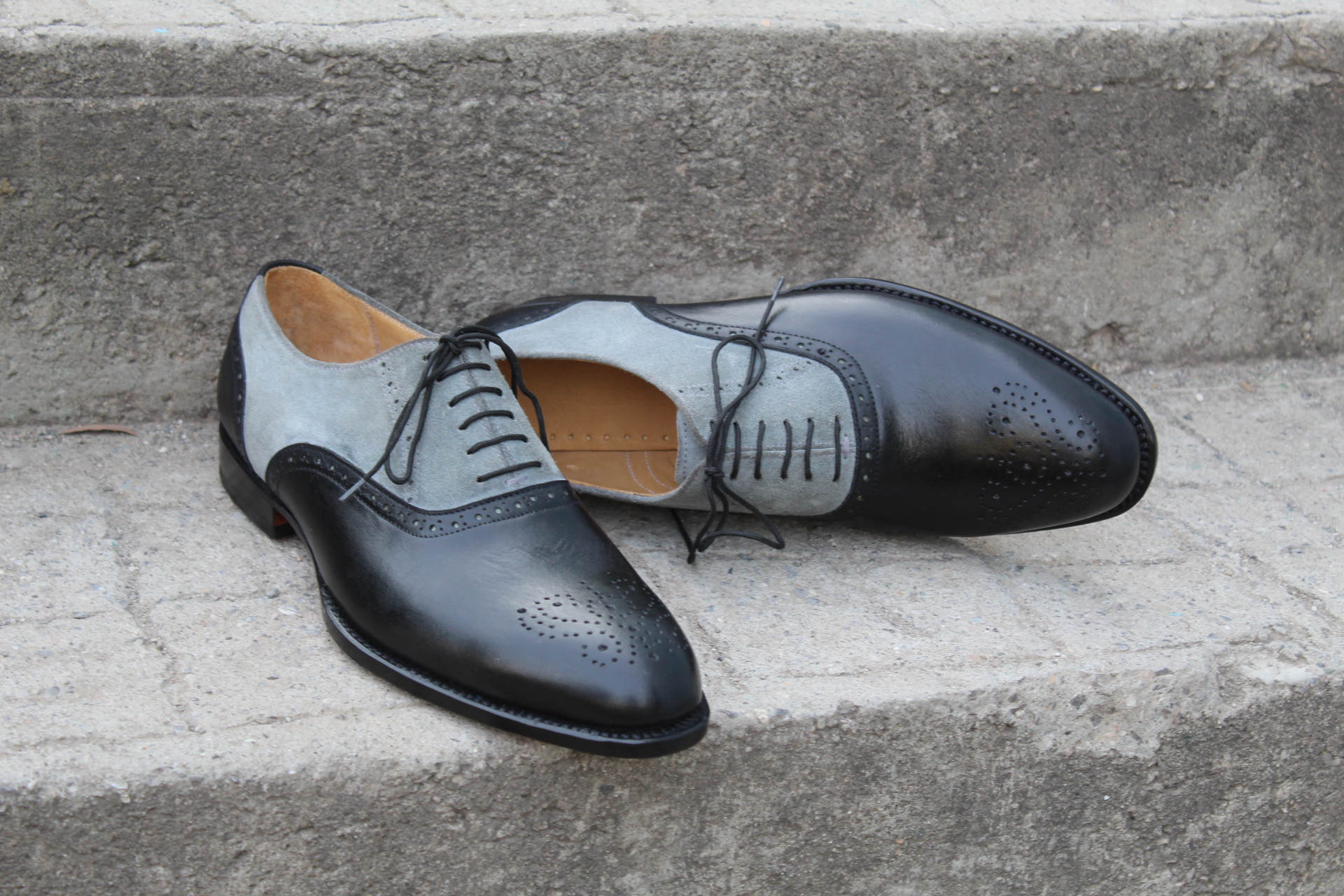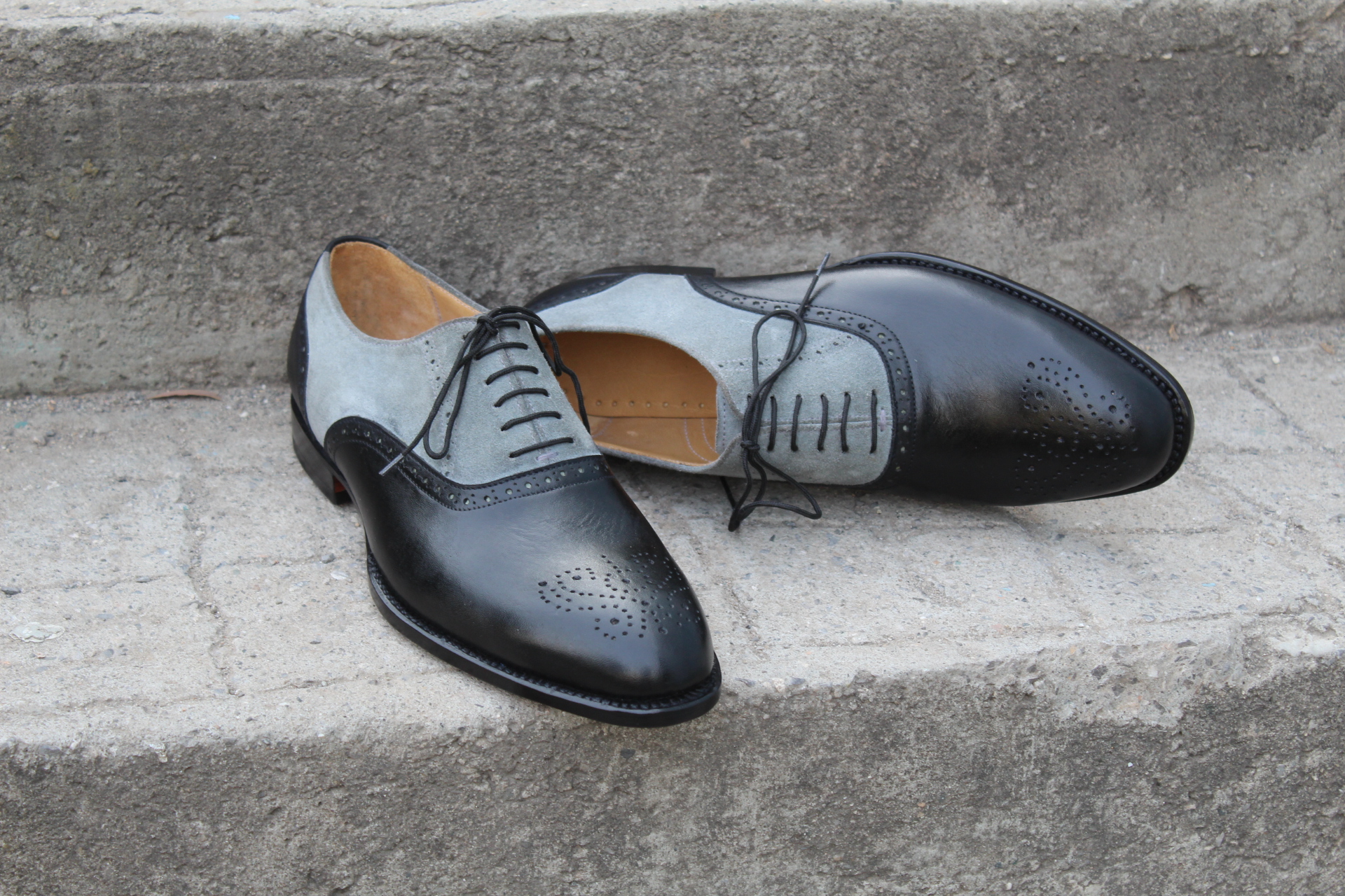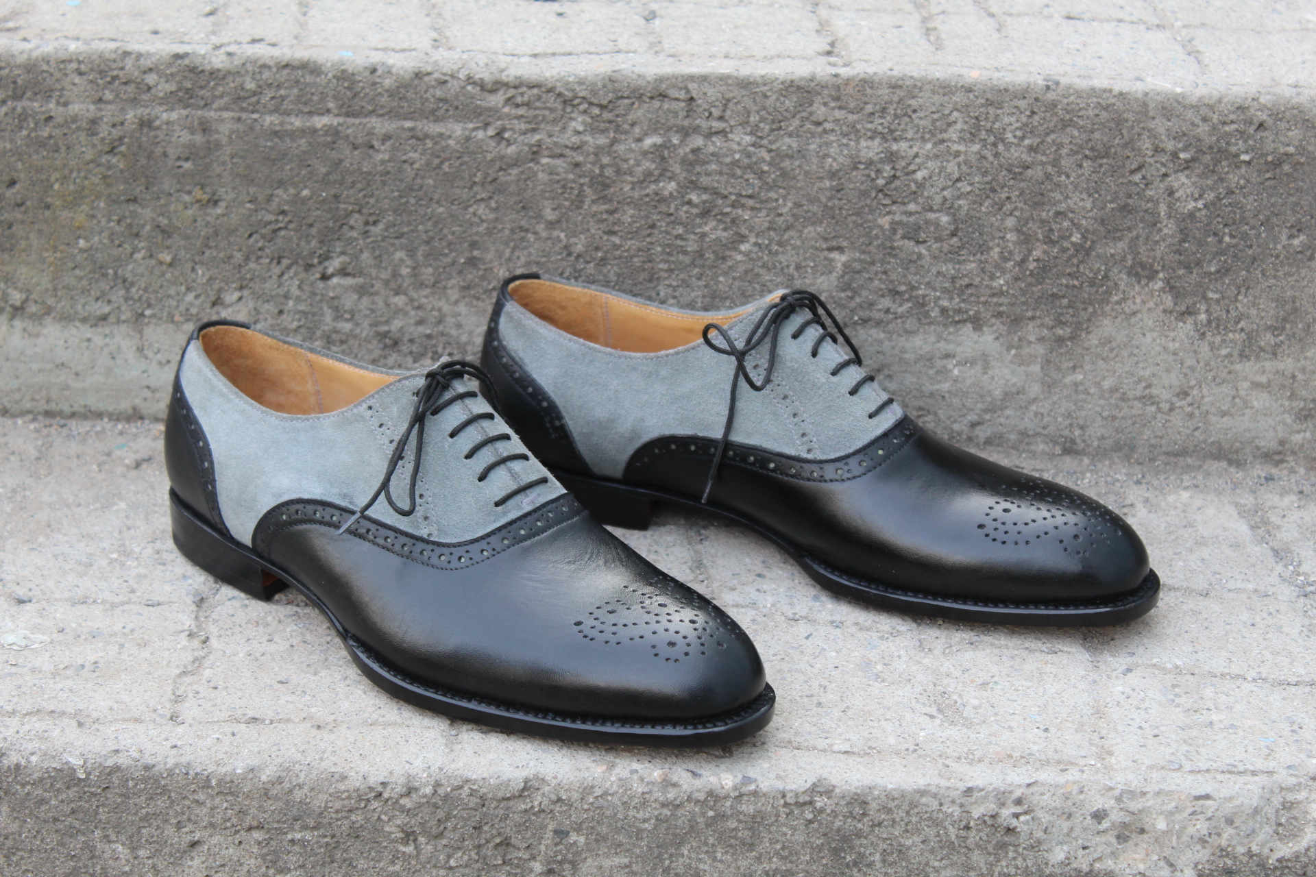 Crafted Leather Men Black Gray Suede Leather Oxford Lace up Dress Shoes