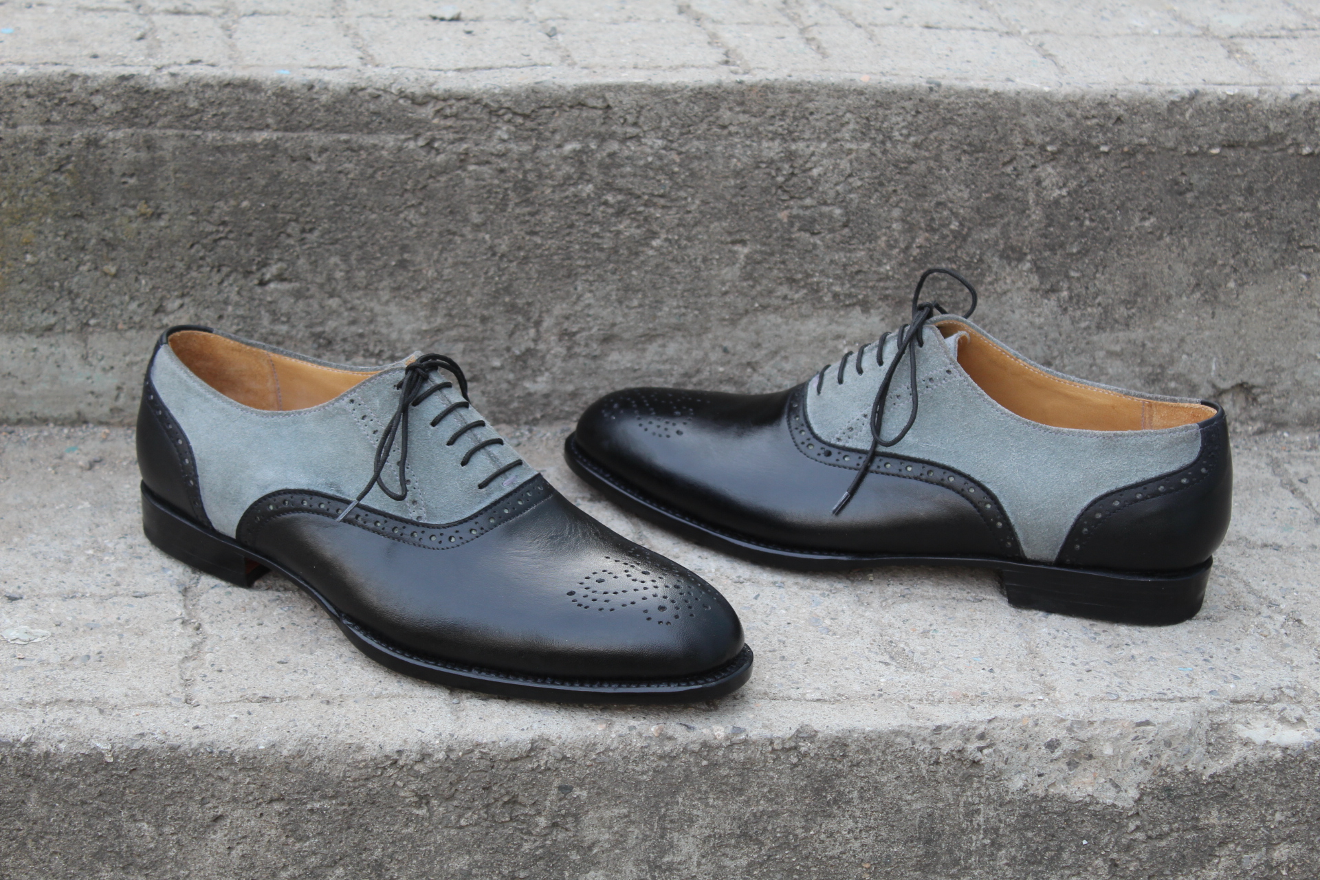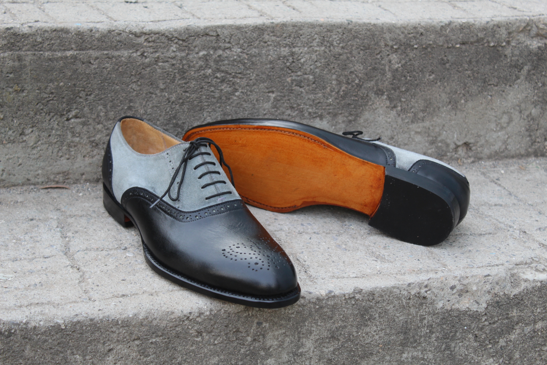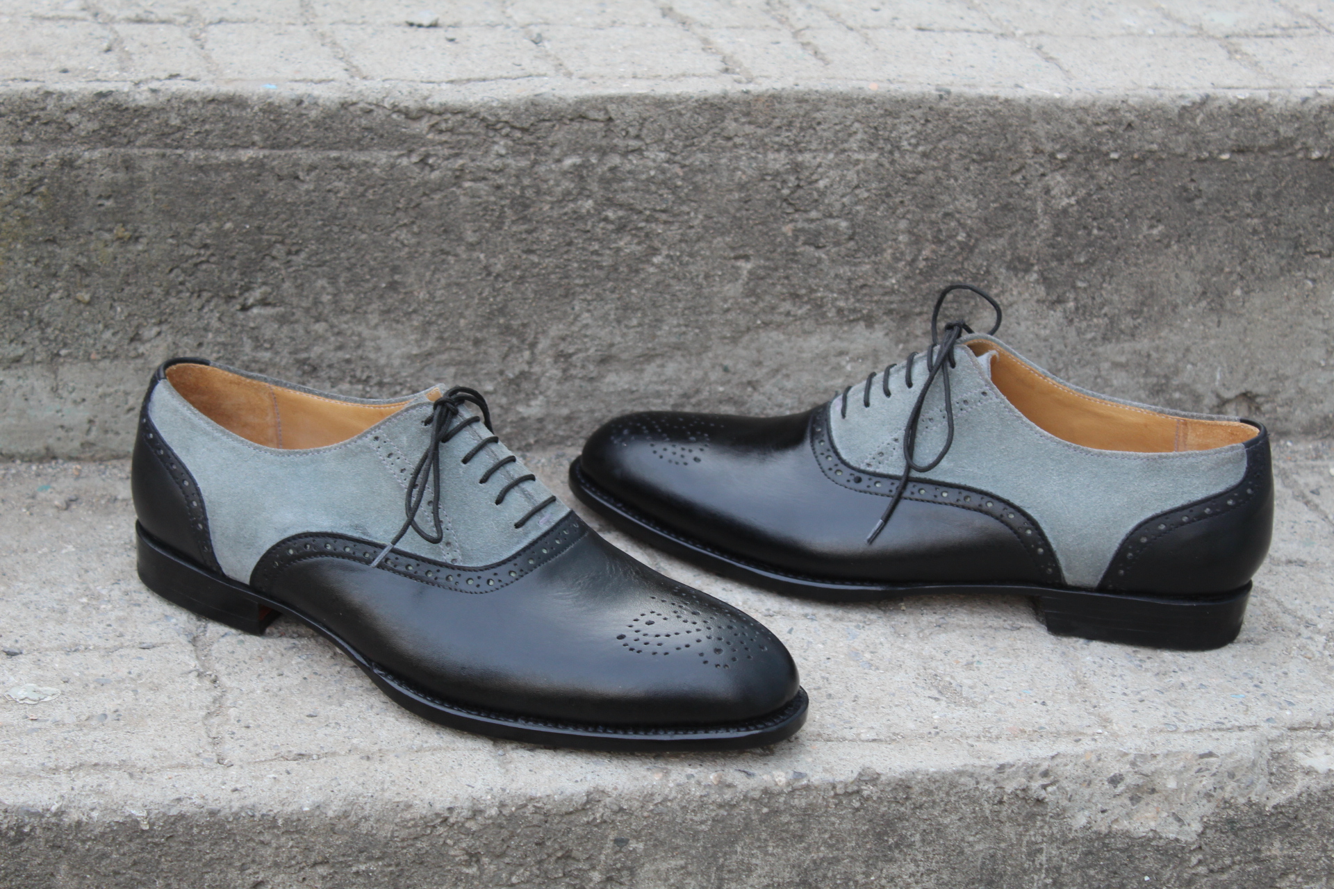 Inner: Soft Leather Sole: Leather Gender : Male Heel: Leather Color: Black / Gray Style: Dress Shoes Lining Soft Calf Leather Lining Totally Hand stitched Manufacturing time 7-10 business days If you can’t find your Size/Colorjust send us message we will make for you.