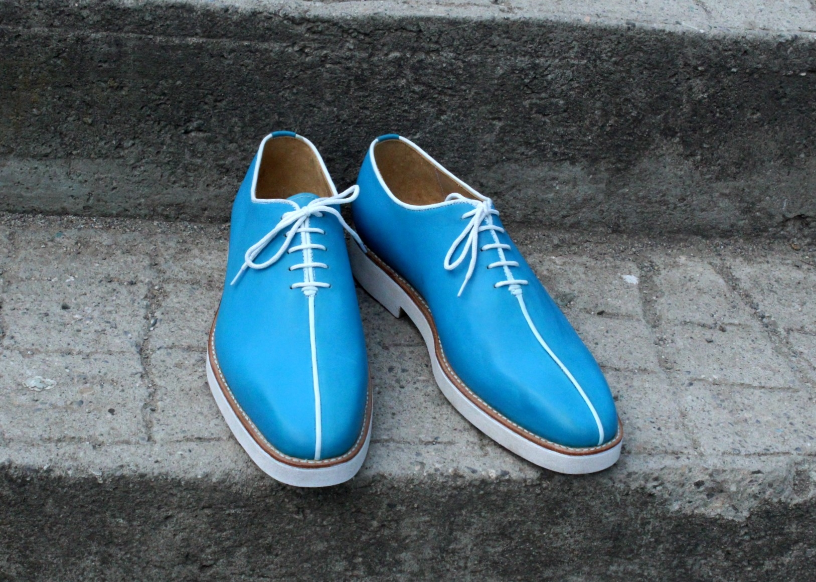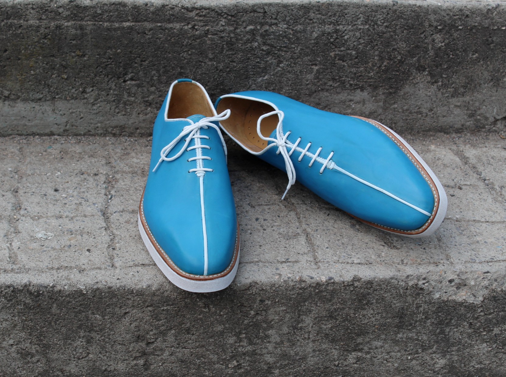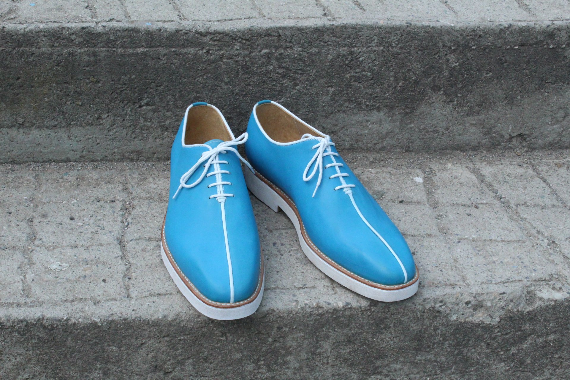 Inner: Soft Leather Sole: Leather Gender : Male Heel: Leather Color: Blue Style: Dress Shoes Lining Soft Calf Leather Lining Totally Hand stitched Manufacturing time 7-10 business days If you can’t find your Size/Colorjust send us message we will make for you.