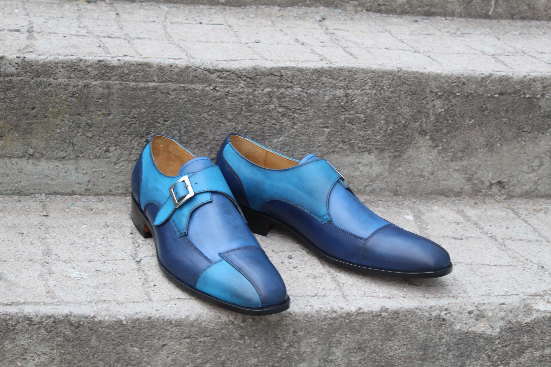 Inner: Soft Leather Sole: Leather Gender : Male Heel: Leather Color: Blue Style: Monk Strap Shoes Lining Soft Calf Leather Lining Totally Hand stitched Manufacturing time 7-10 business days If you can’t find your Size/Colorjust send us message we will make for you.