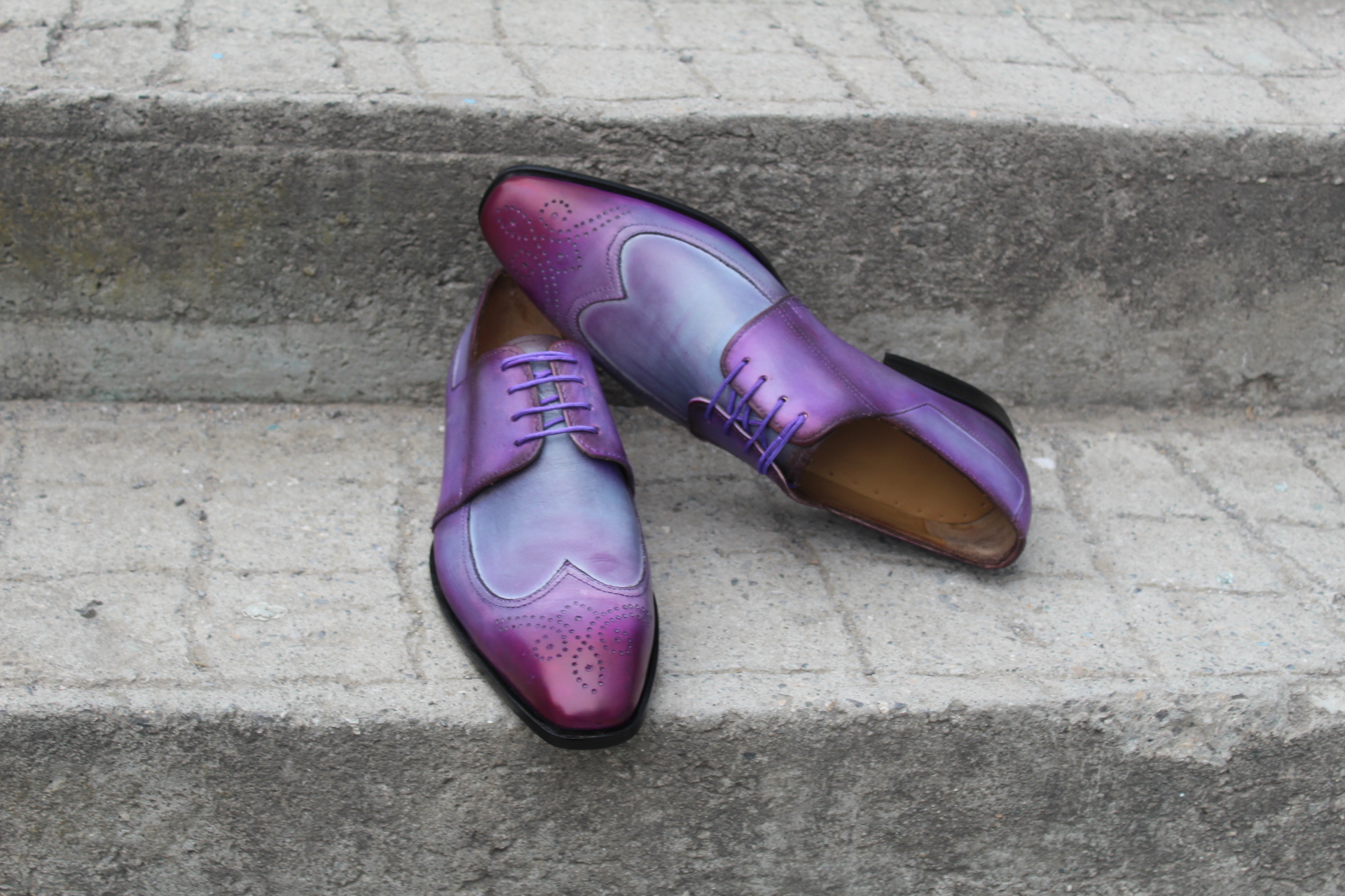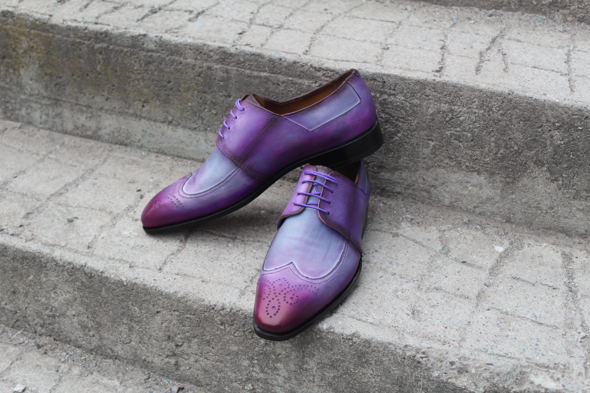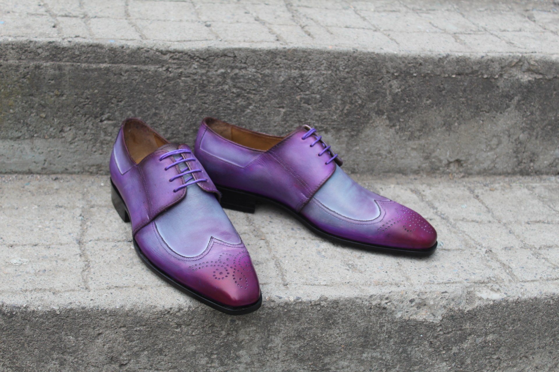 Crafted Leather Purple Patina Oxford Lace up Wingtip Dress Shoes