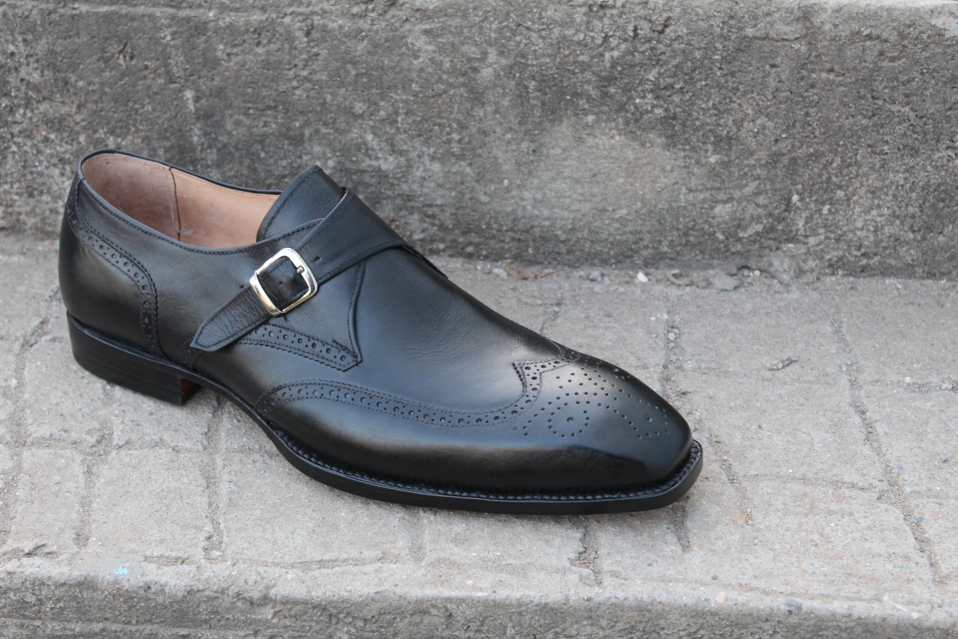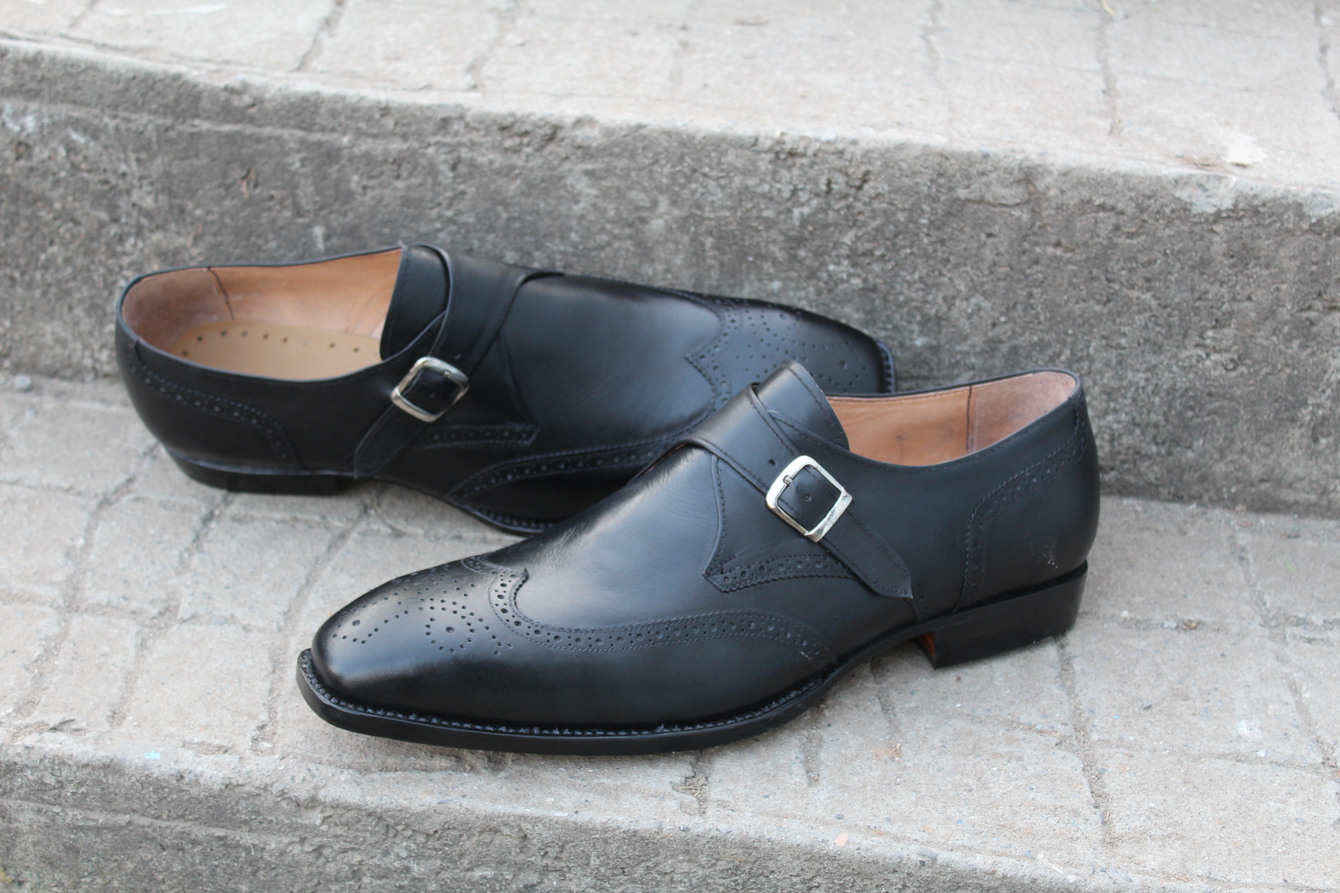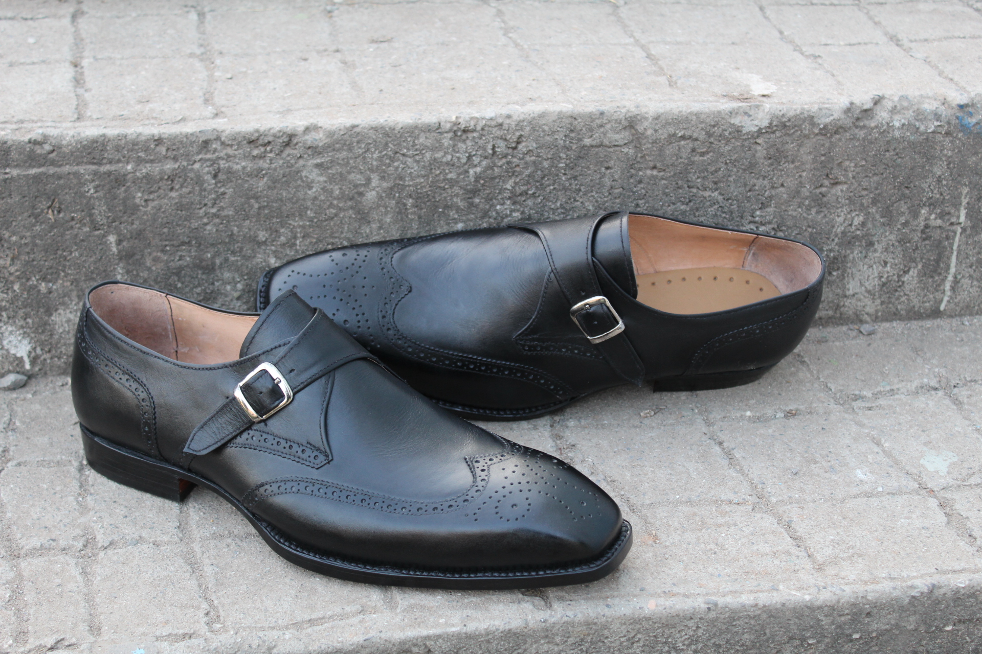 Inner: Soft Leather Sole: Leather Gender : Male Heel: Leather Color: Black Style: Monk Strap Wingtip Shoes Lining Soft Calf Leather Lining Totally Hand stitched Manufacturing time 7-10 business days If you can’t find your Size/Colorjust send us message we will make for you.
