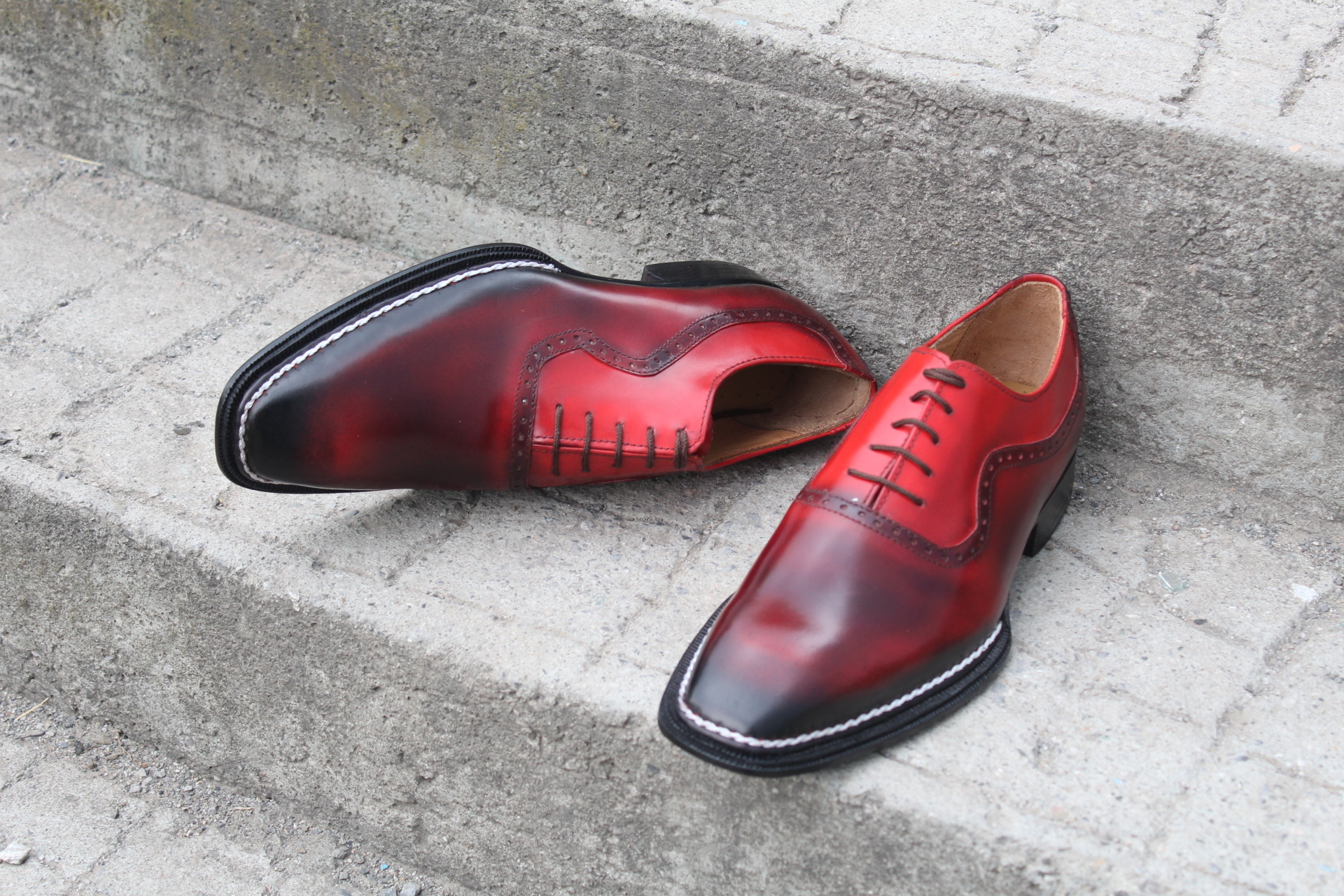 Crafted Leather Burgundy Patina Leather Oxford Lace up Dress Shoes with Matching Belt