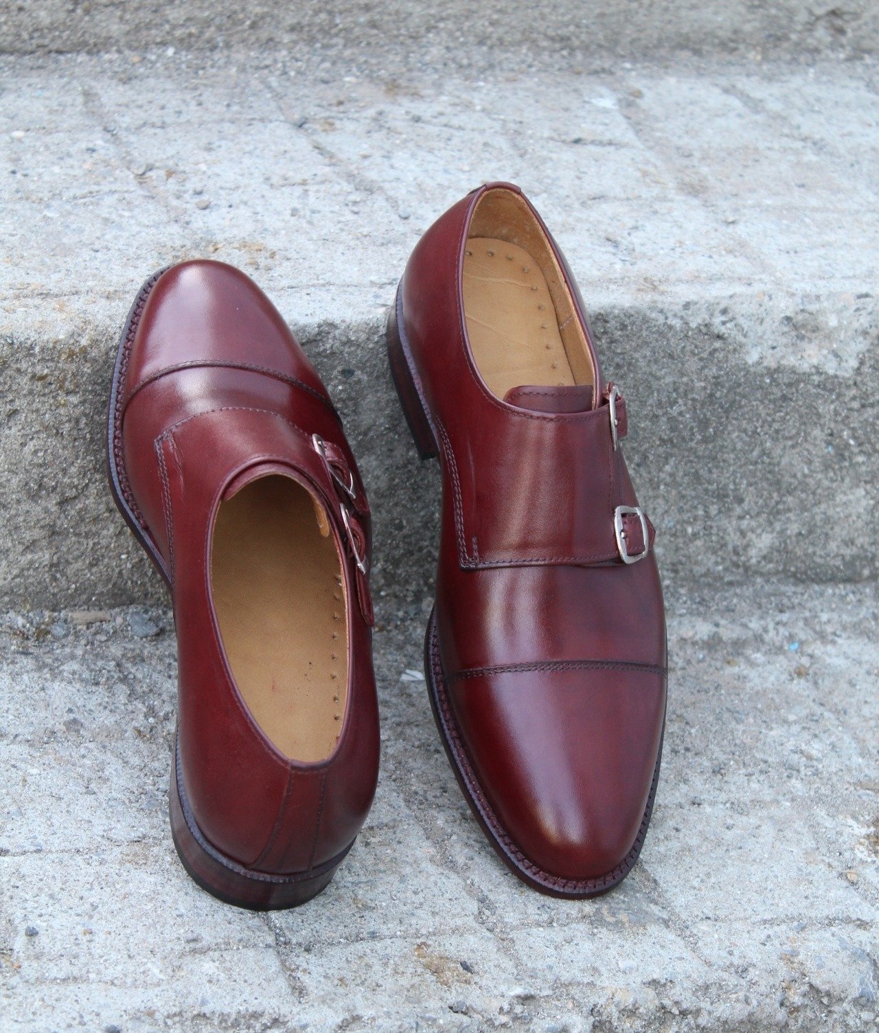 Inner: Soft Leather Sole: Leather Gender : Male Heel: Leather Color: Burgundy Style: Double Monk Shoes Lining Soft Calf Leather Lining Totally Hand stitched Manufacturing time 7-10 business days If you can’t find your Size/Colorjust send us message we will make for you.