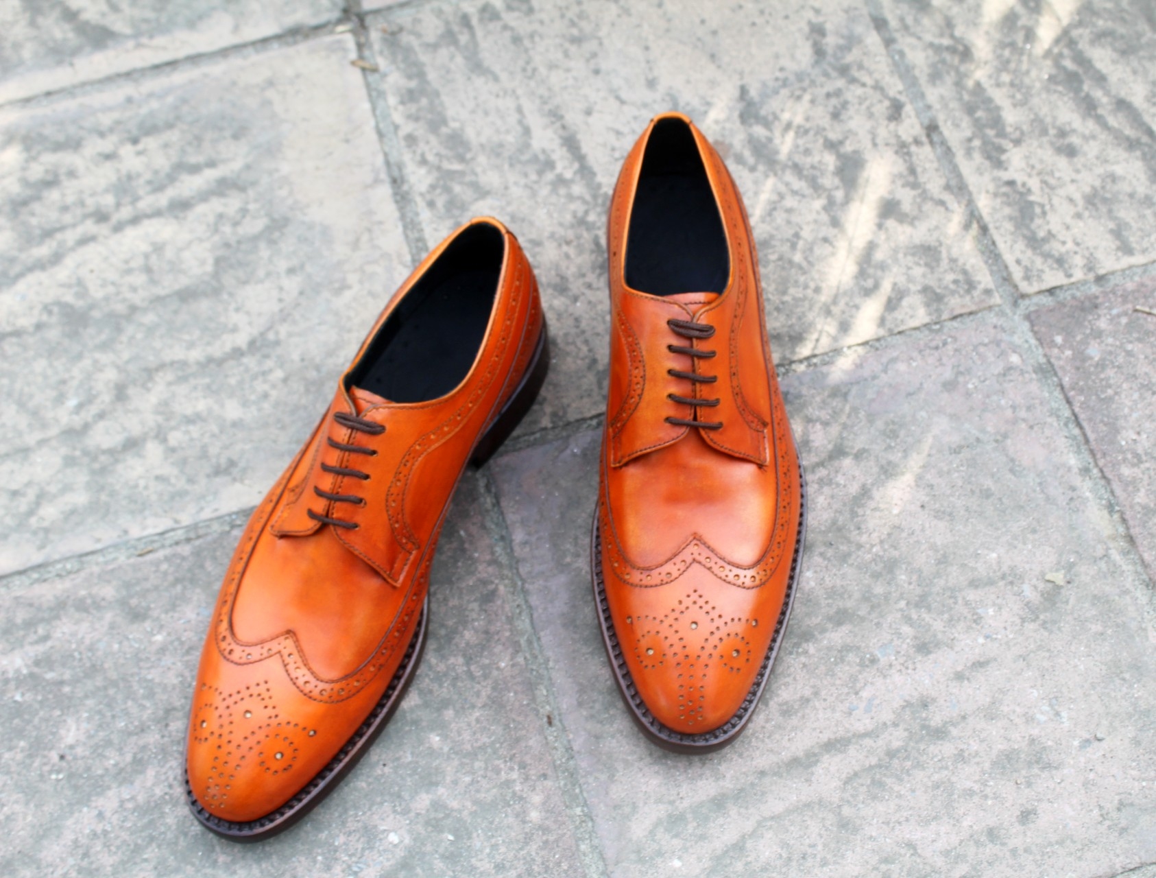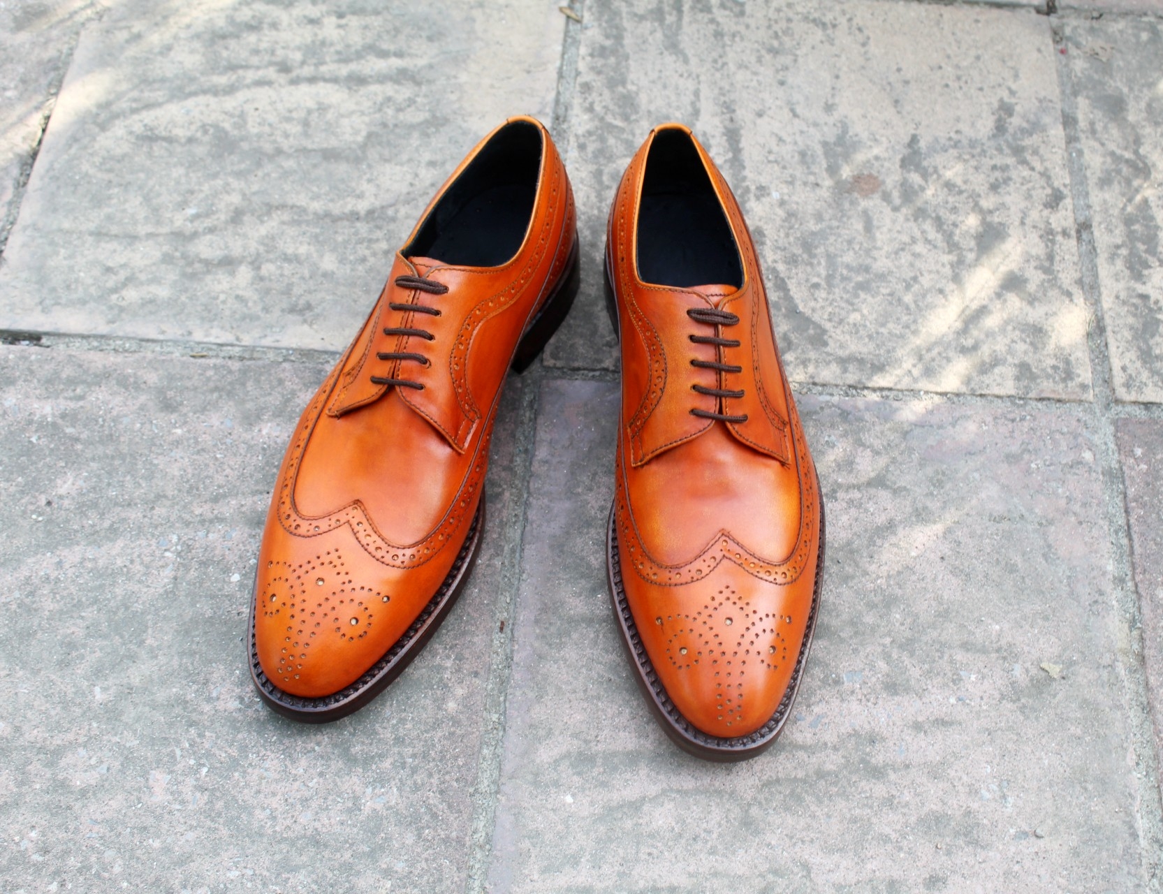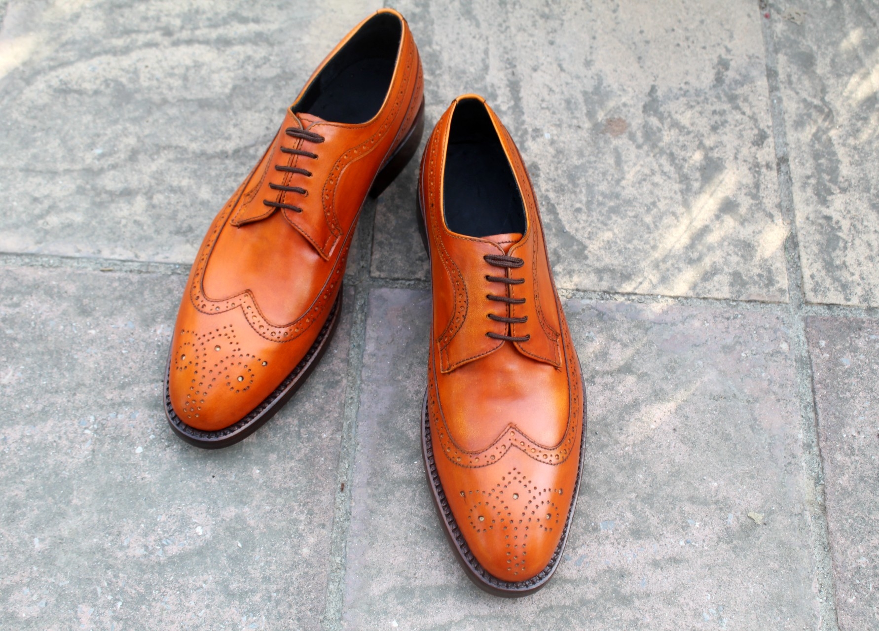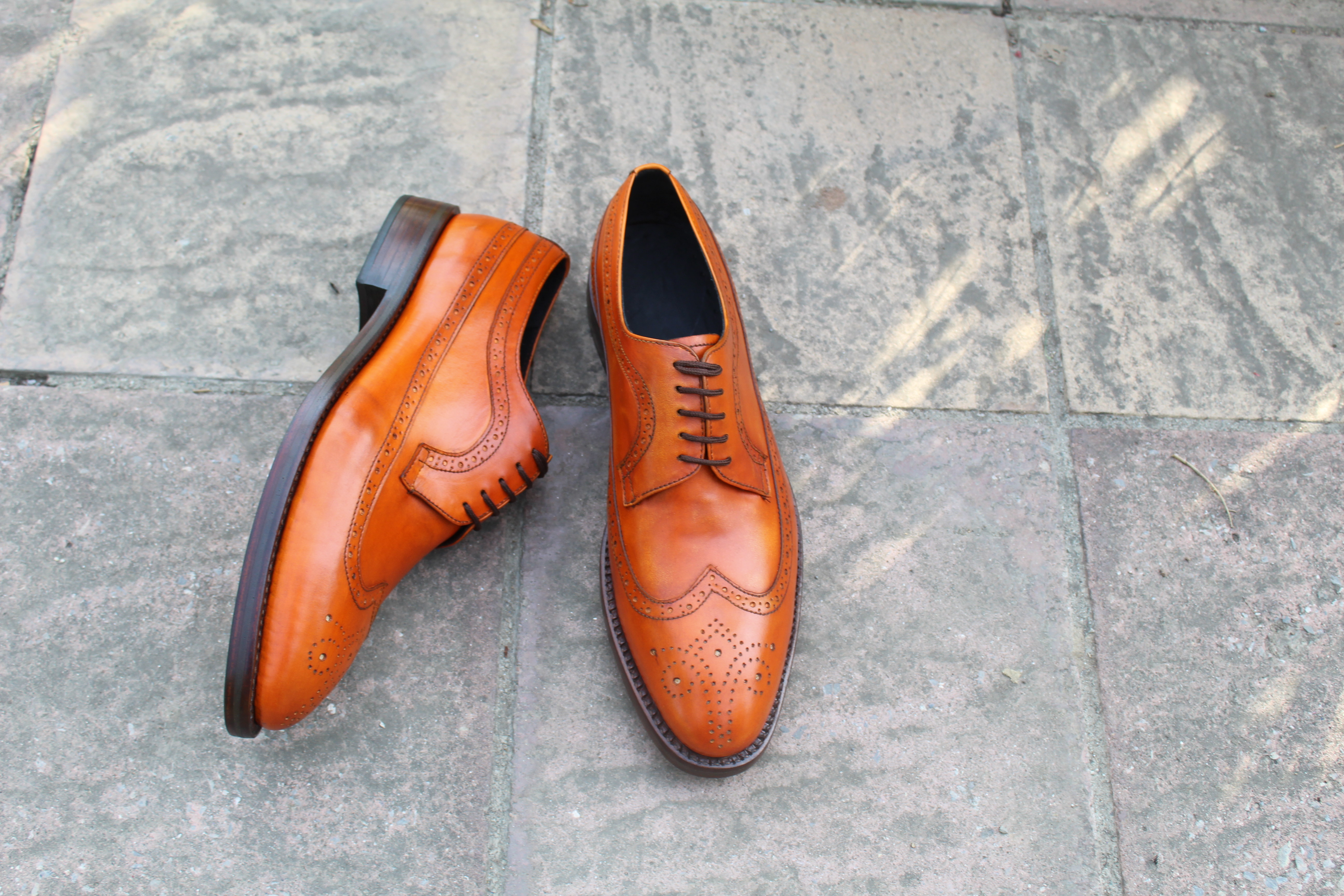Crafted Leather Classic Tan Leather Wingtip Oxford Lace up Dress Shoes