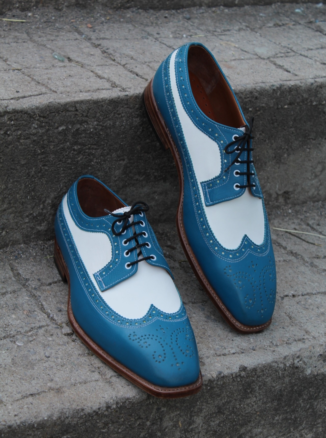Inner: Soft Leather Sole: Leather Gender : Male Heel: Leather Color: Blue / White Style: Oxford Shoes Lining Soft Calf Leather Lining Totally Hand stitched Manufacturing time 7-10 business days If you can’t find your Size/Colorjust send us message we will make for you.