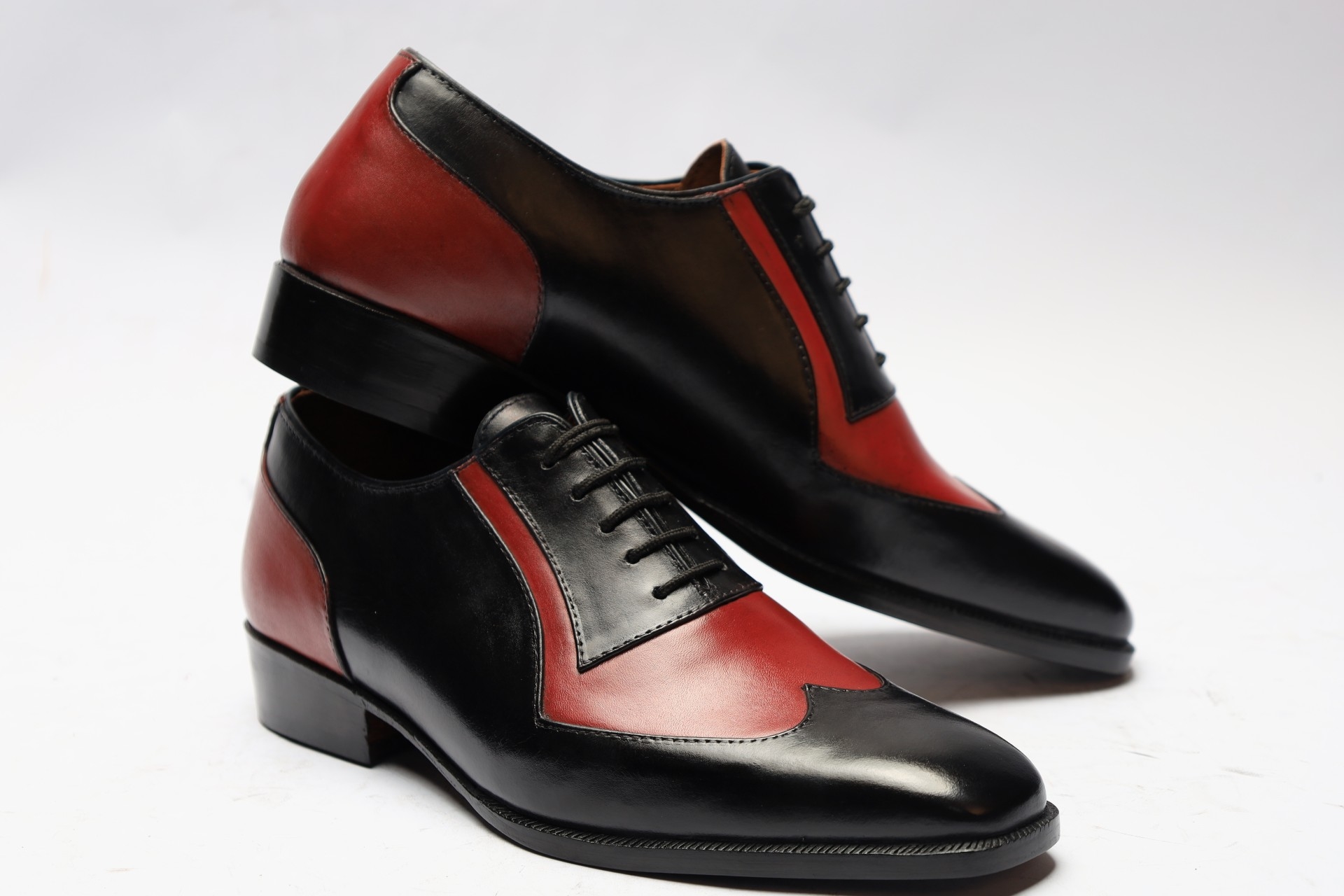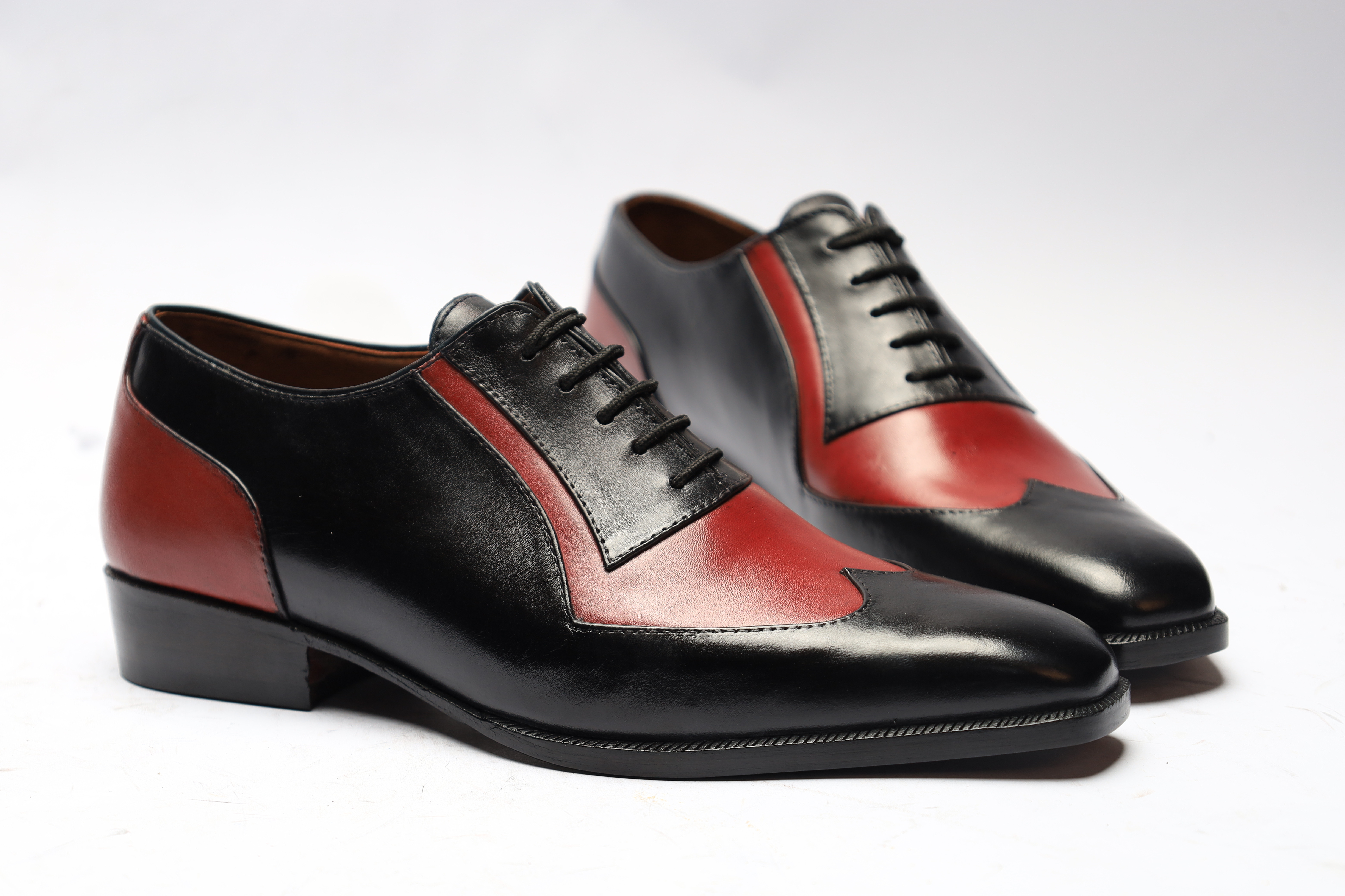 Crafted Leather Classic Red Black Leather Wingtip Oxford Lace up Dress Shoes