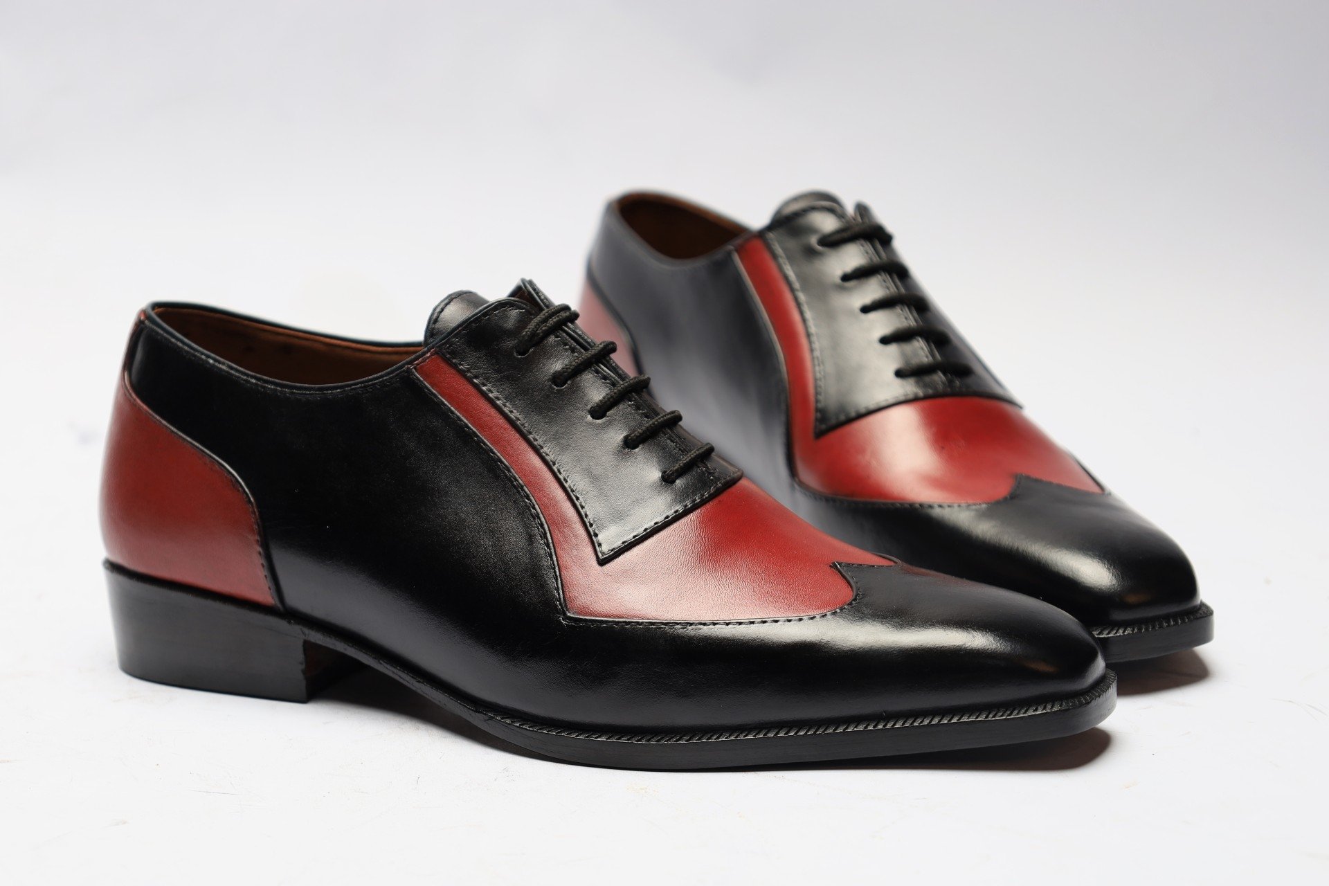 Inner: Soft Leather Sole: Leather Gender : Male Heel: Leather Color: Red / Black Style: Wingtip Oxford Shoes Lining Soft Calf Leather Lining Totally Hand stitched Manufacturing time 7-10 business days If you can’t find your Size/Colorjust send us message we will make for you.