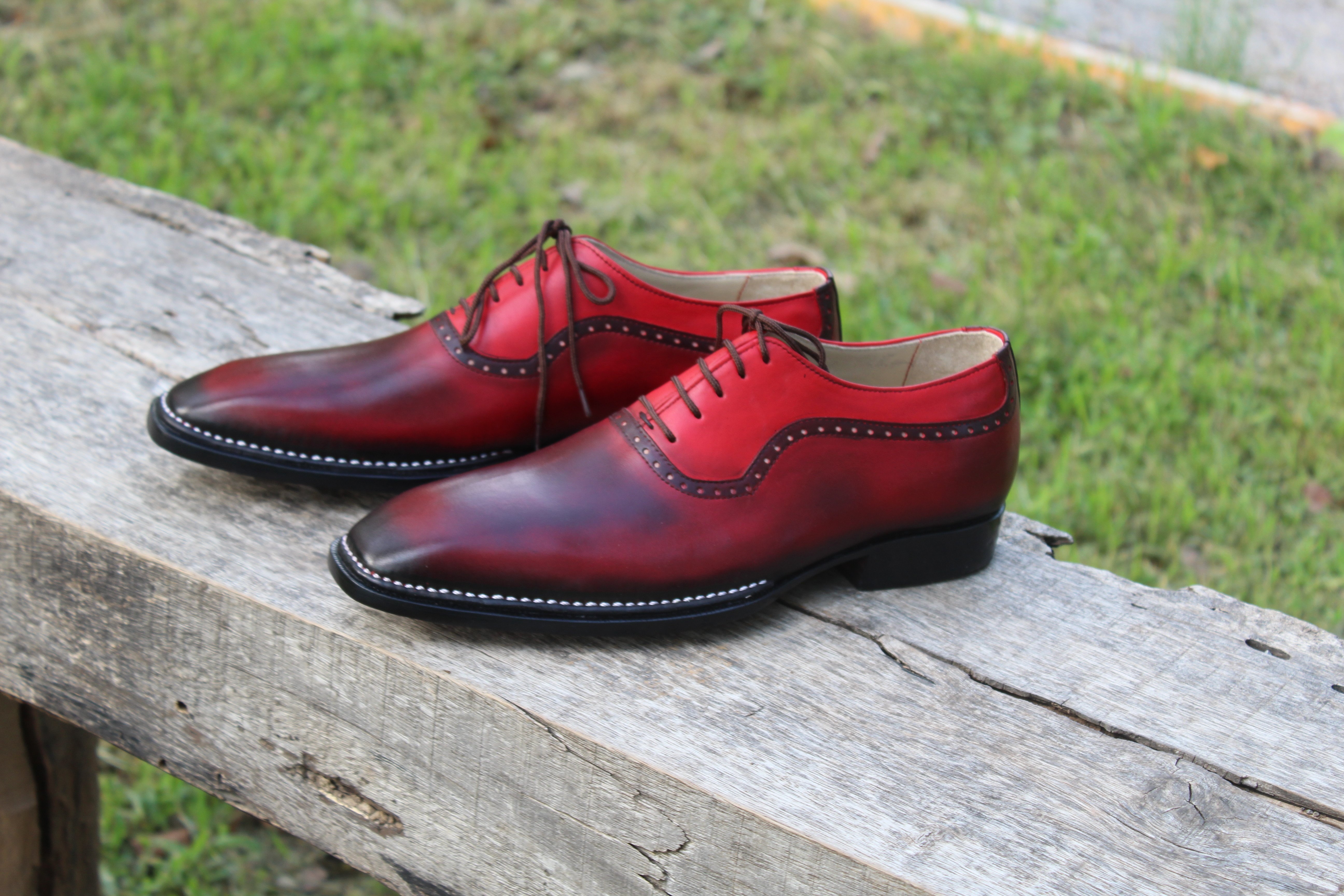 Inner: Soft Leather  Sole: Leather  Gender : Male Heel: Leather Color:   Burgundy Patina Style:    Dress Shoes Lining Soft Calf Leather Lining Totally Hand stitched Manufacturing time 7-10 business days If you can’t find your Size/Colorjust send us message we will make for you.