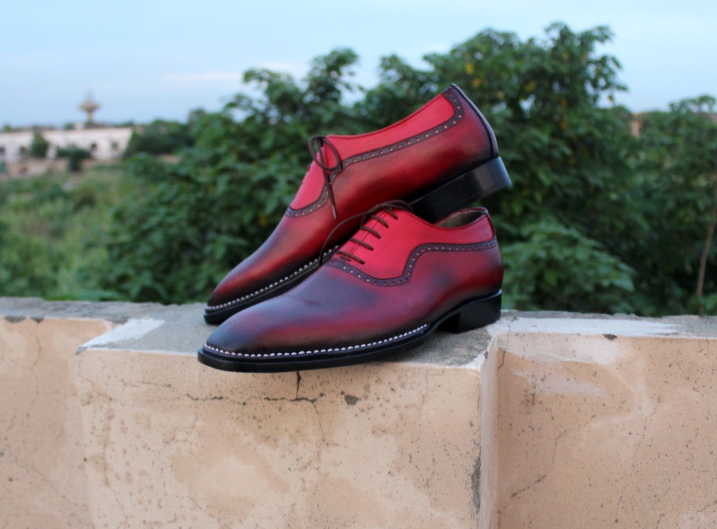 Crafted Leather Classic Fashion Burgundy Patina Leather Dress Shoes