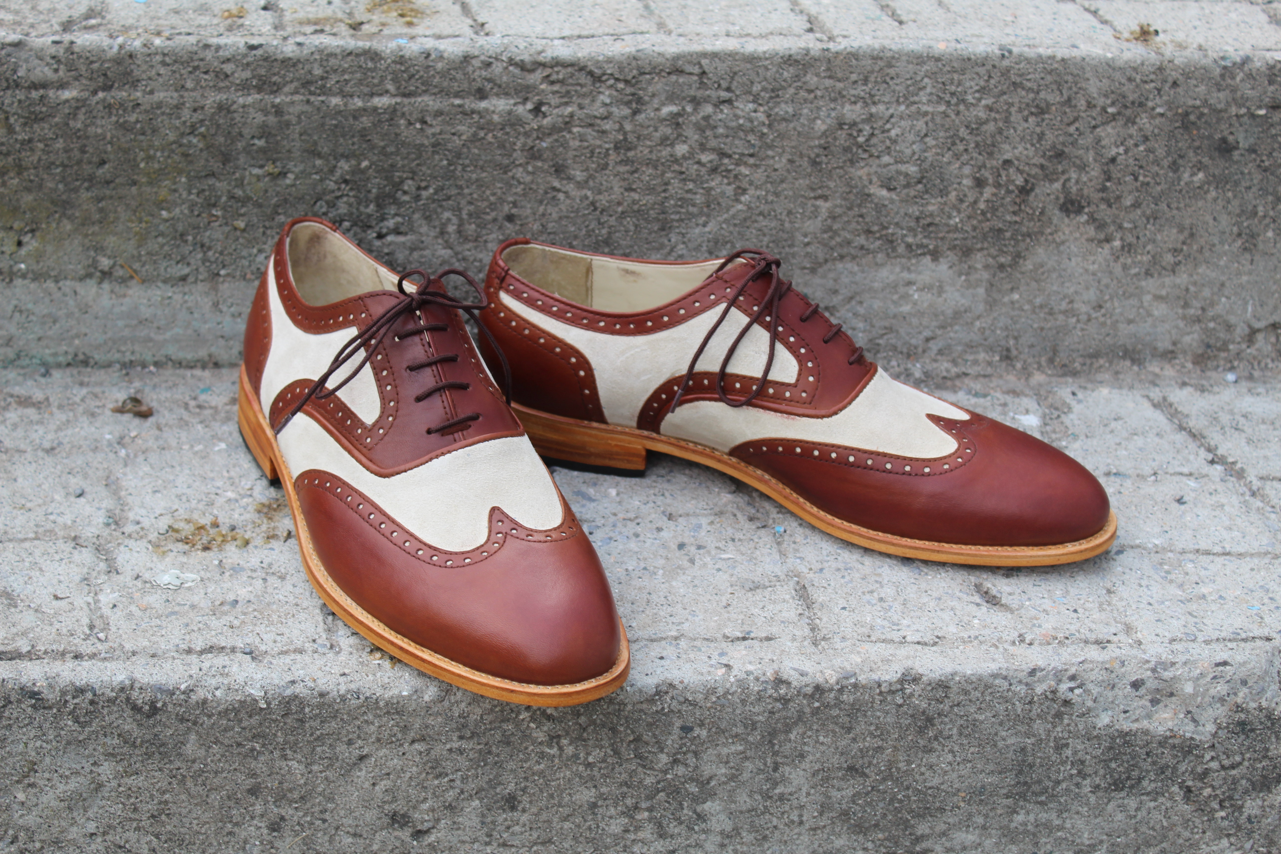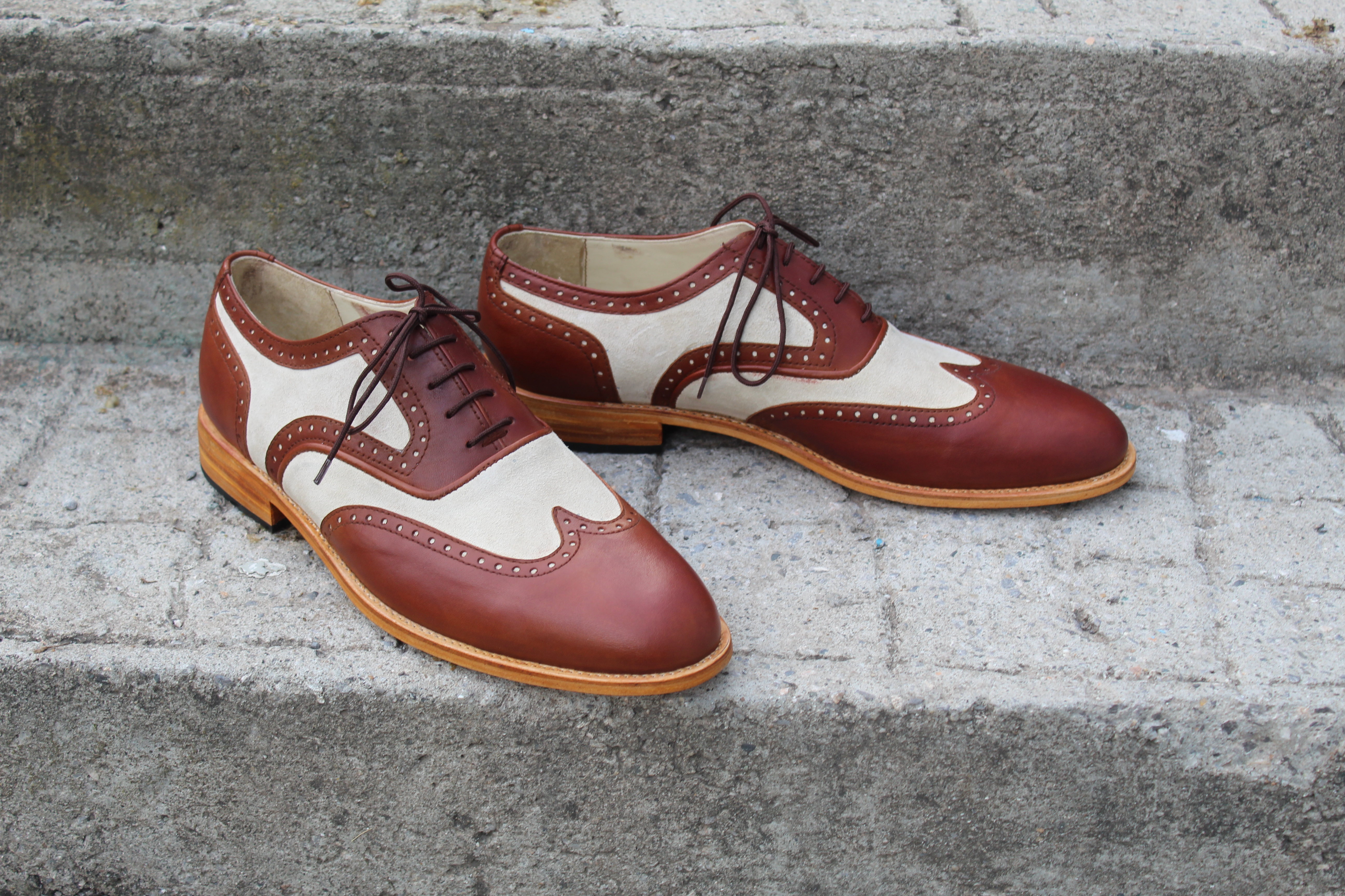 Inner: Soft Leather Sole: Leather Gender : Male Heel: Leather Style: Wingtip Oxford Shoes Lining Soft Calf Leather Lining Totally Hand stitched Manufacturing time 7-10 business days If you can’t find your Size/Colorjust send us message we will make for you.