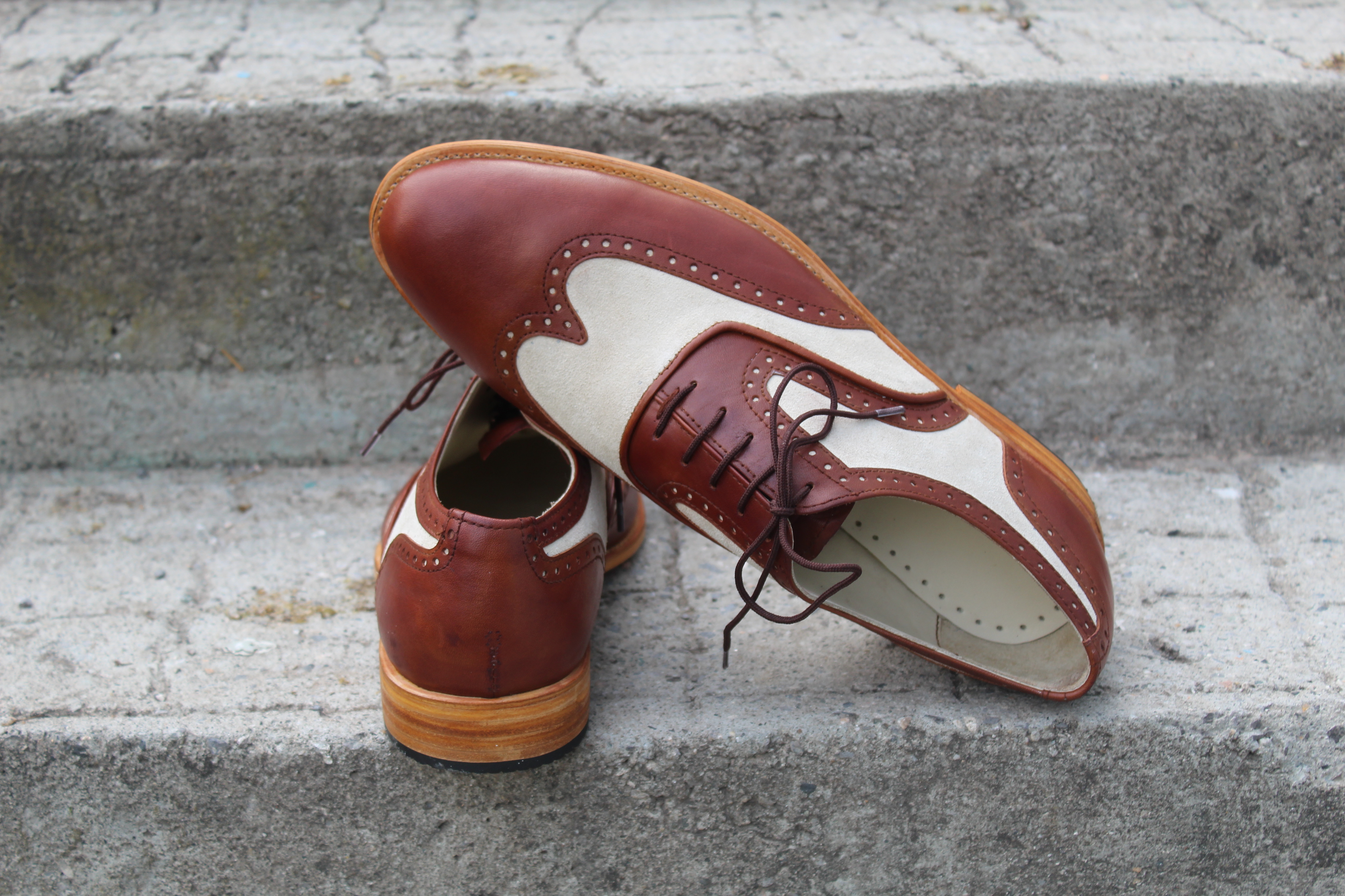 Crafted Leather Classic Brown White Suede Leather Wingtip Oxford Dress Shoes