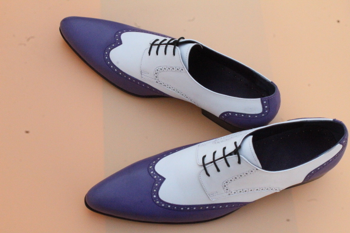 Inner: Soft Leather Sole: Leather Gender : Male Heel: Leather Color: Blue / White Style: Wingtip Dress Shoes Lining Soft Calf Leather Lining Totally Hand stitched Manufacturing time 7-10 business days If you can’t find your Size/Colorjust send us message we will make for you.