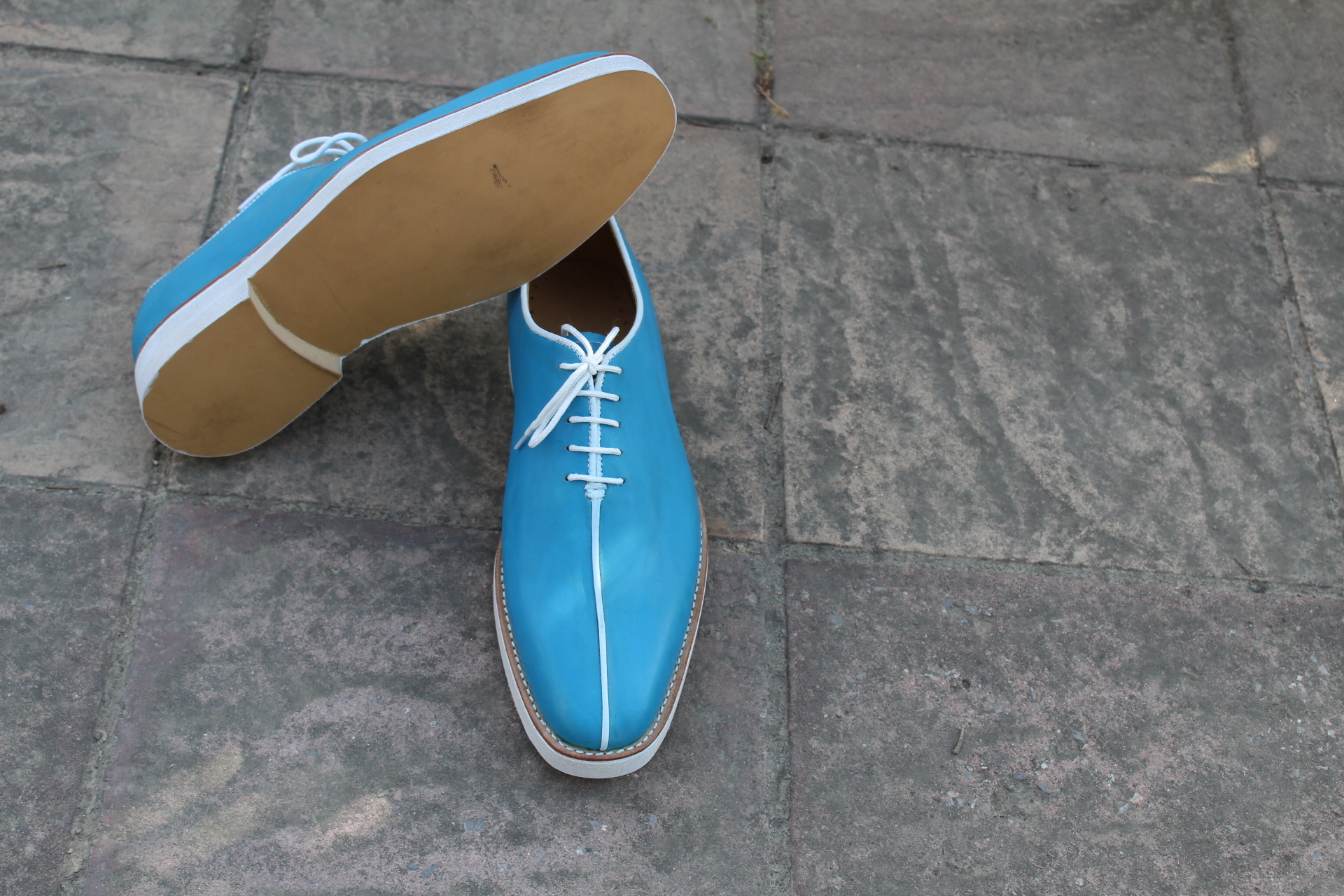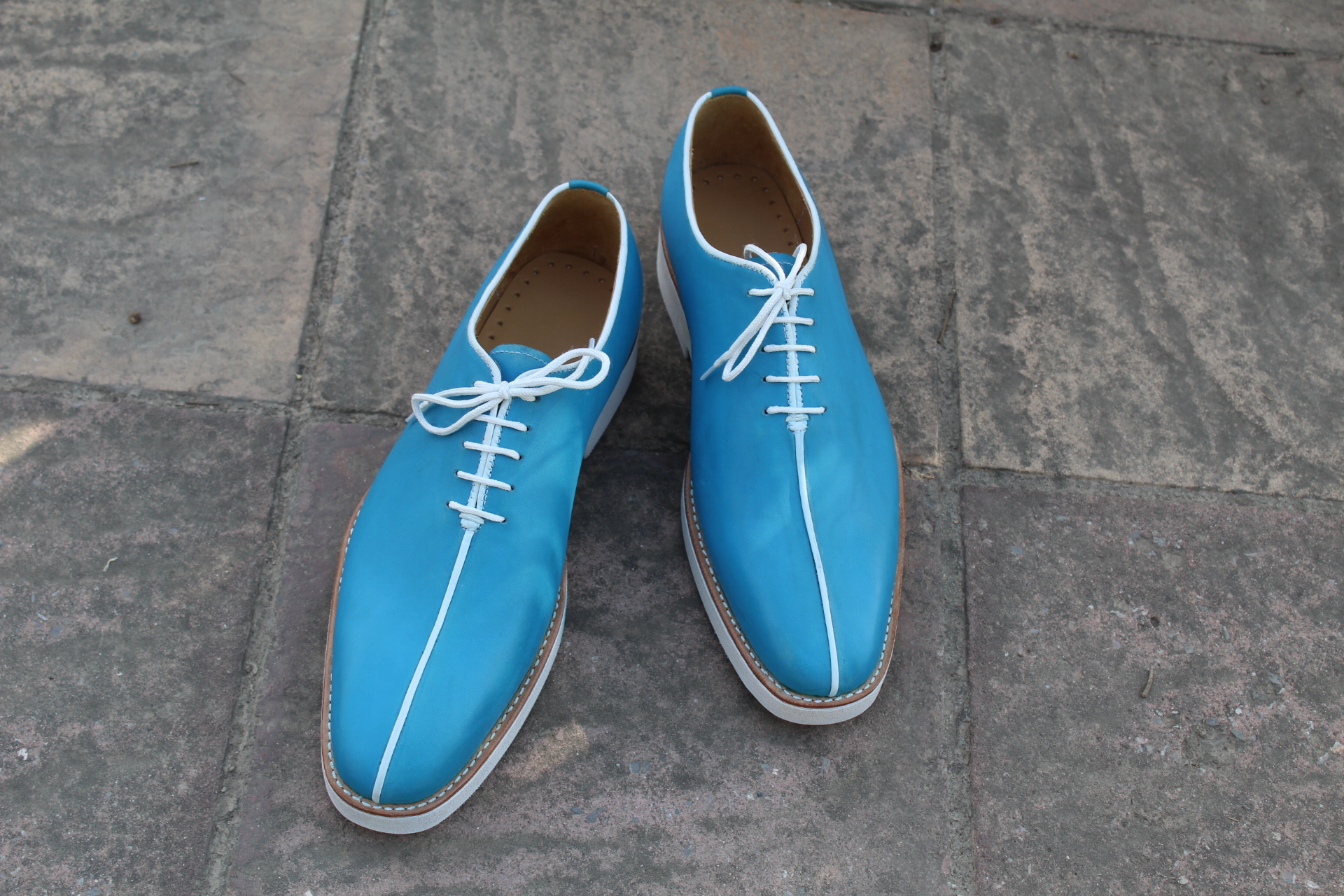 Inner: Soft Leather Sole: Leather Gender : Male Heel: Leather Color: Blue Style: Dress Shoes Lining Soft Calf Leather Lining Totally Hand stitched Manufacturing time 7-10 business days If you can’t find your Size/Colorjust send us message we will make for you.