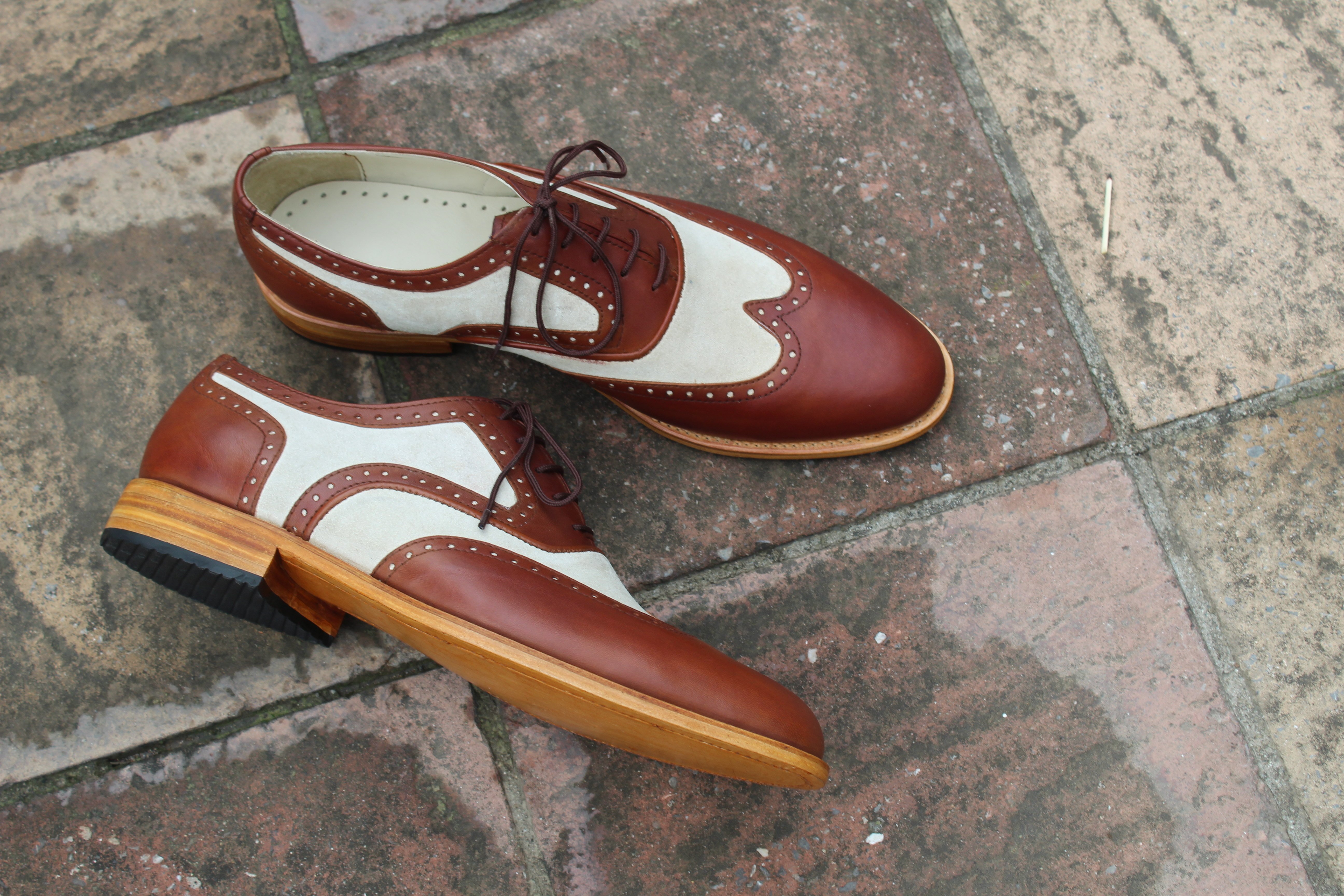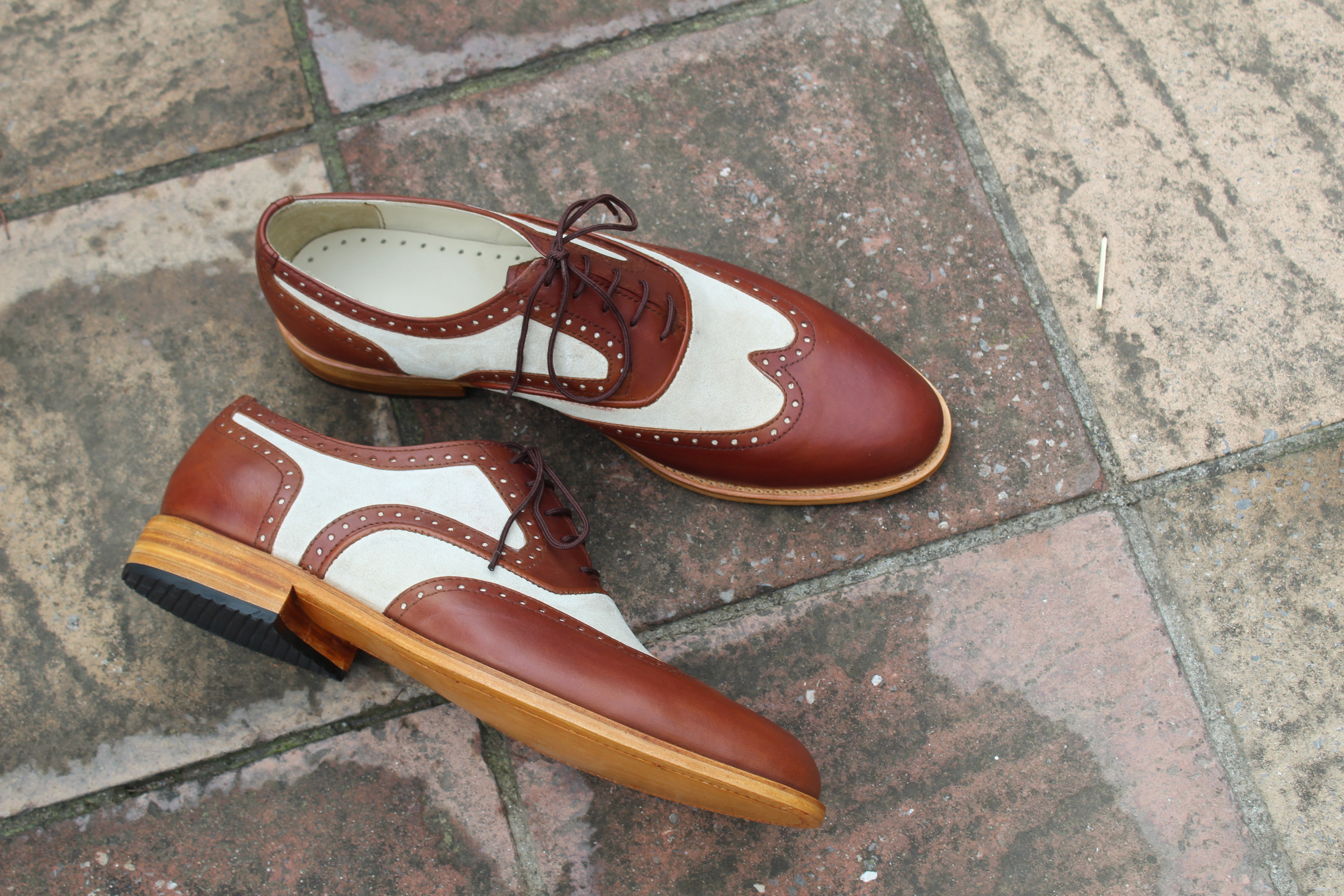 Crafted Leather Classic Brown Leather Beige Suede Dress Shoes