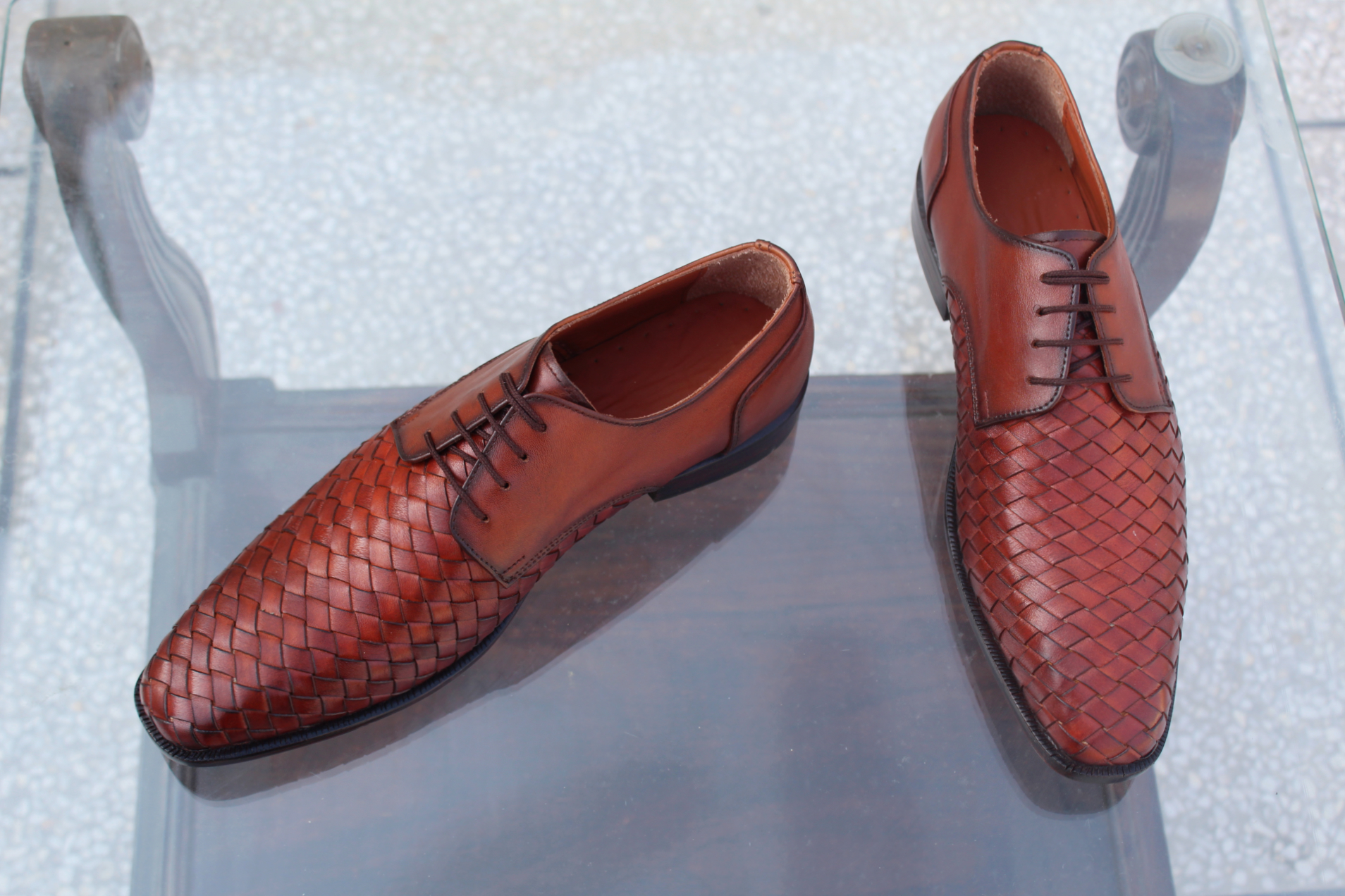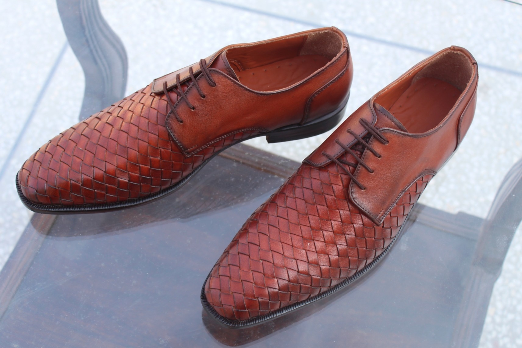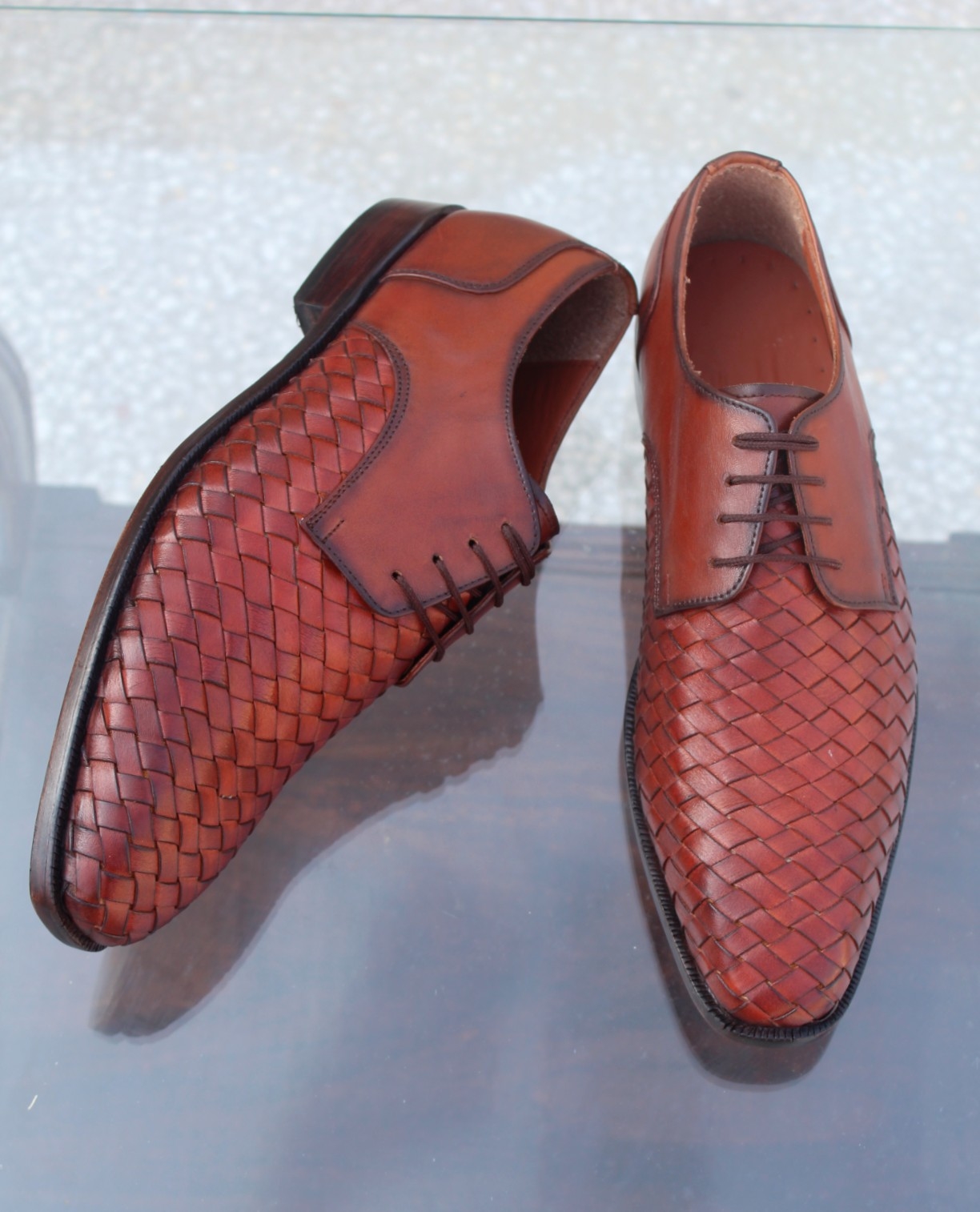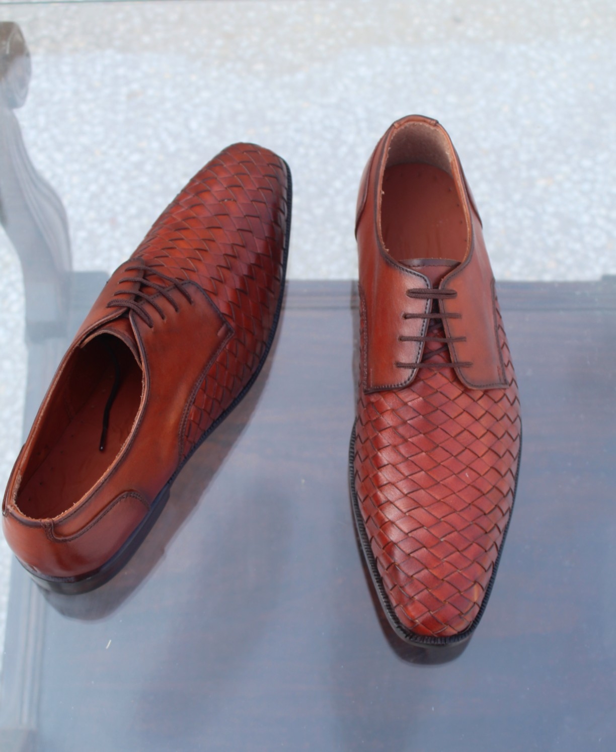 Crafted Leather Classic Men Brown Woven Leather Lace up Dress Shoes