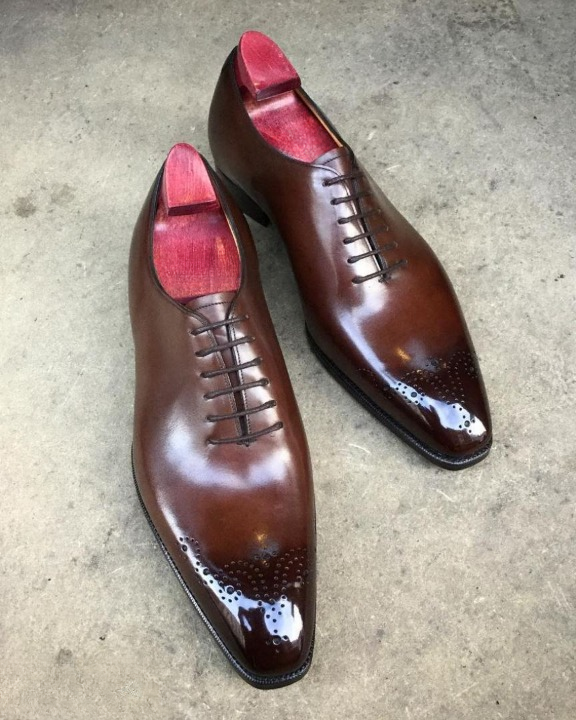 Handmade Men Brown Patina Leather Oxford Dress Shoes