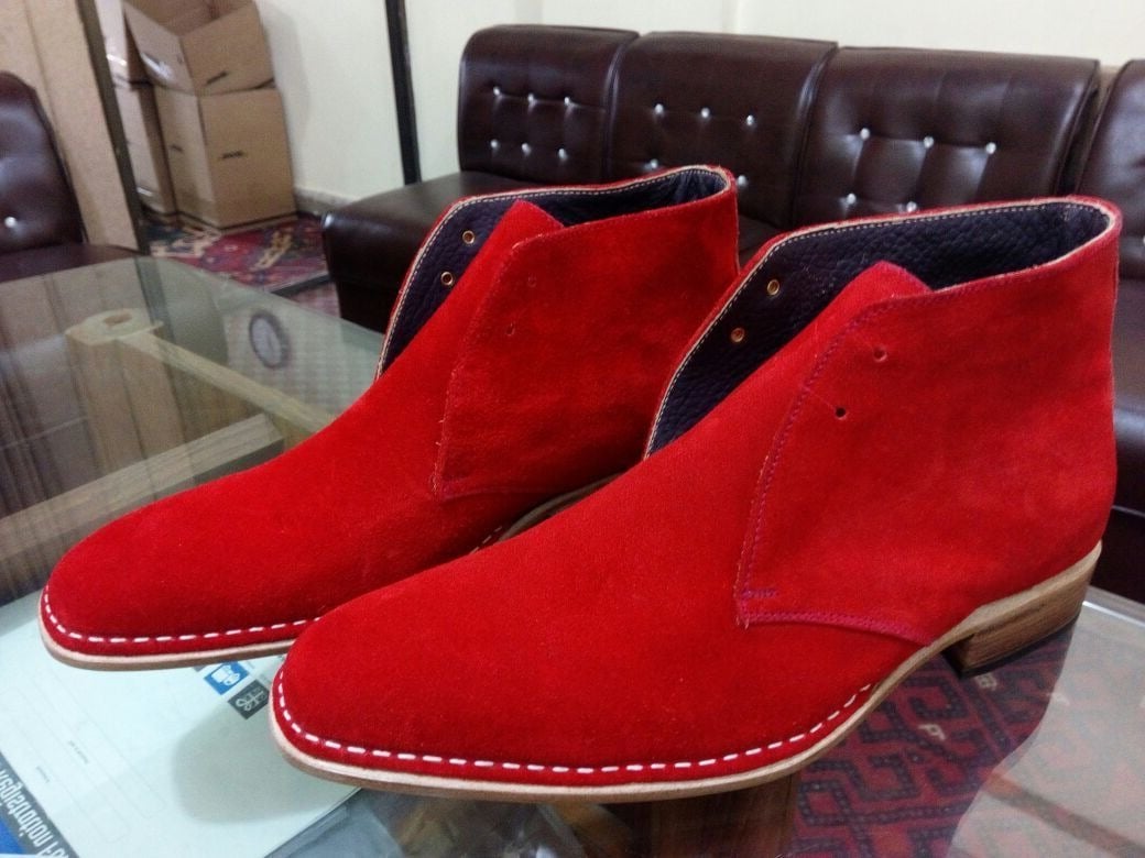 Inner: Soft Leather Sole: Leather Gender : Male Heel: Leather Color: Red Style: Chukka Boot Lining Soft Calf Leather Lining Totally Hand stitched Manufacturing time 7-10 business days If you can’t find your Size/Colorjust send us message we will make for you.