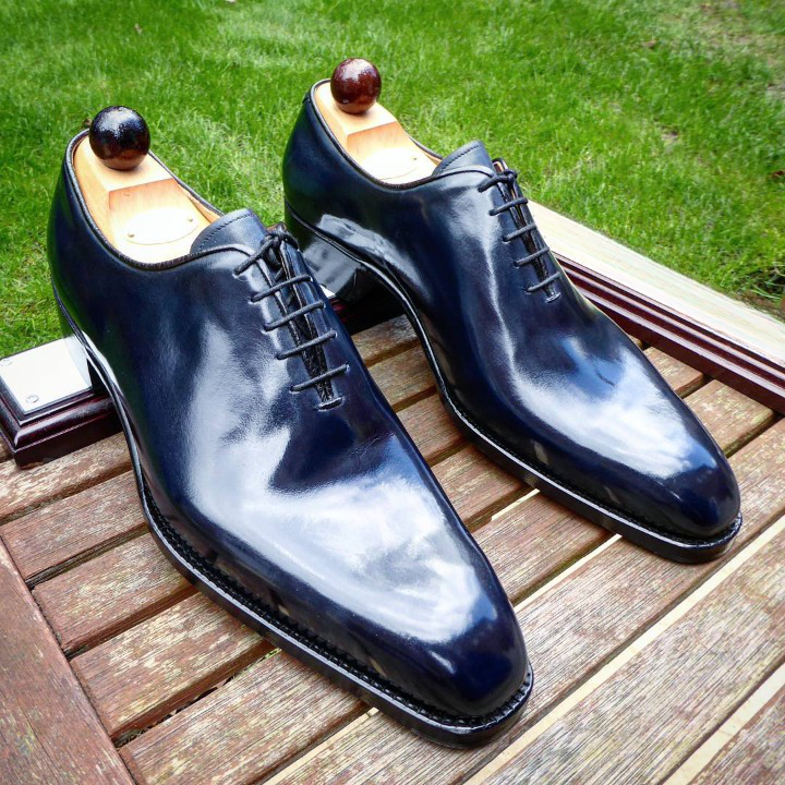 Wholecut Men's Deep Blue Museum Leather Single Sole Lace-up Oxford Formal Dress Shoes, Handwelted Construction