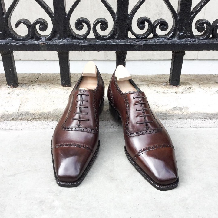 Handmade Men Brown Leather Oxford Lace up Dress Shoes