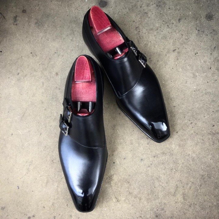 Inner: Soft Leather Sole: Leather Gender : Male Heel: Leather Color: Black Style: Double Monk Dress Shoes Totally Hand stitched Manufacturing time 7-10 business days If you can’t find your Size/Color just send us message we will make for you.