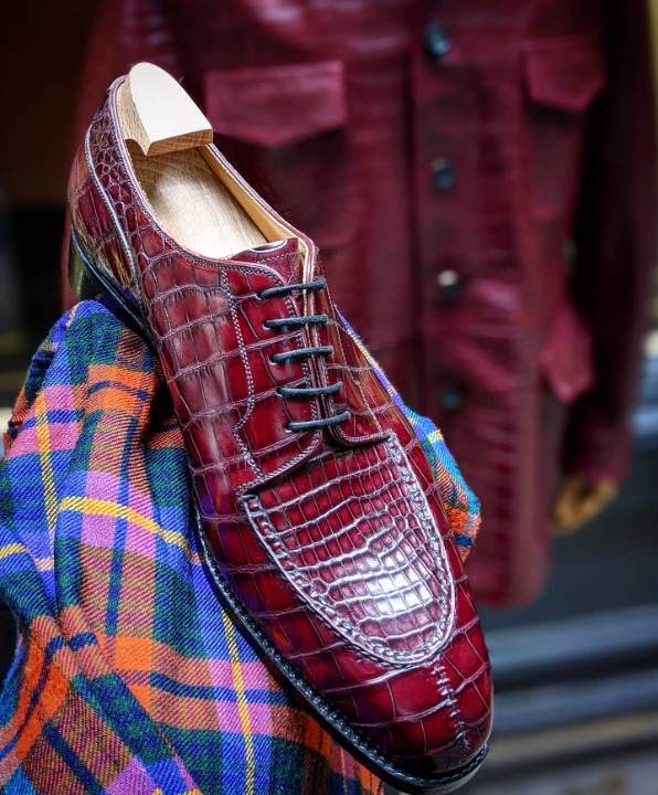 Handmade Men Burgundy Patina Crocodile/Alligator Leather Oxford Lace up Dress Shoes