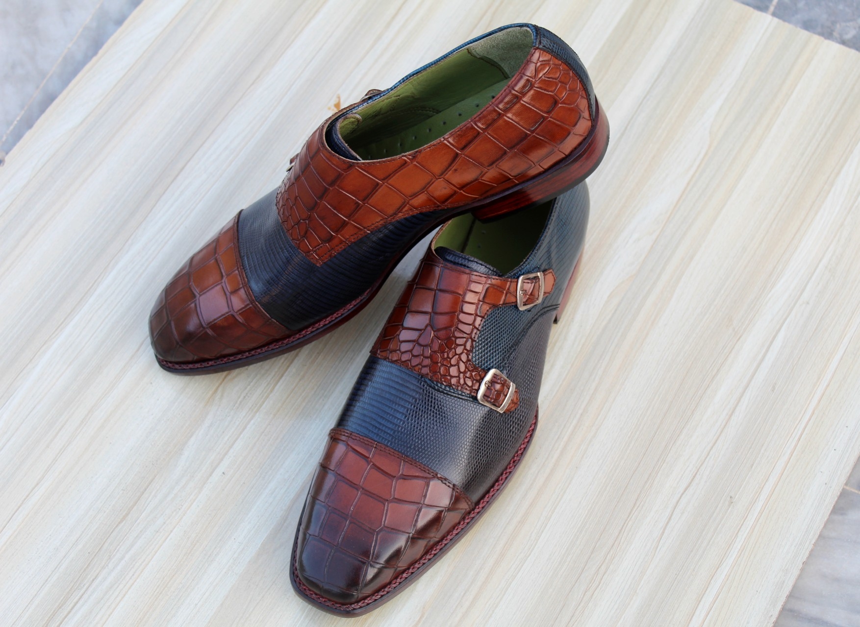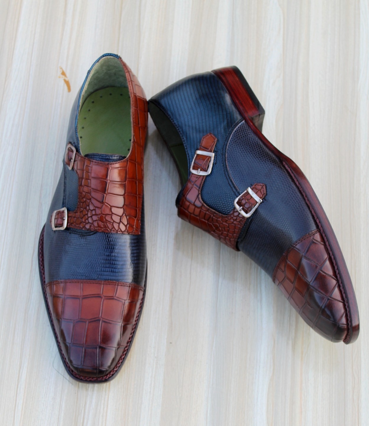 Inner: Soft Leather Sole: Leather Gender : Male Heel: Leather Color: Brown / Blue Style: Monk Shoes Lining Soft Calf Leather Lining Totally Hand stitched Manufacturing time 7-10 business days If you can’t find your Size/Colorjust send us message we will make for you.