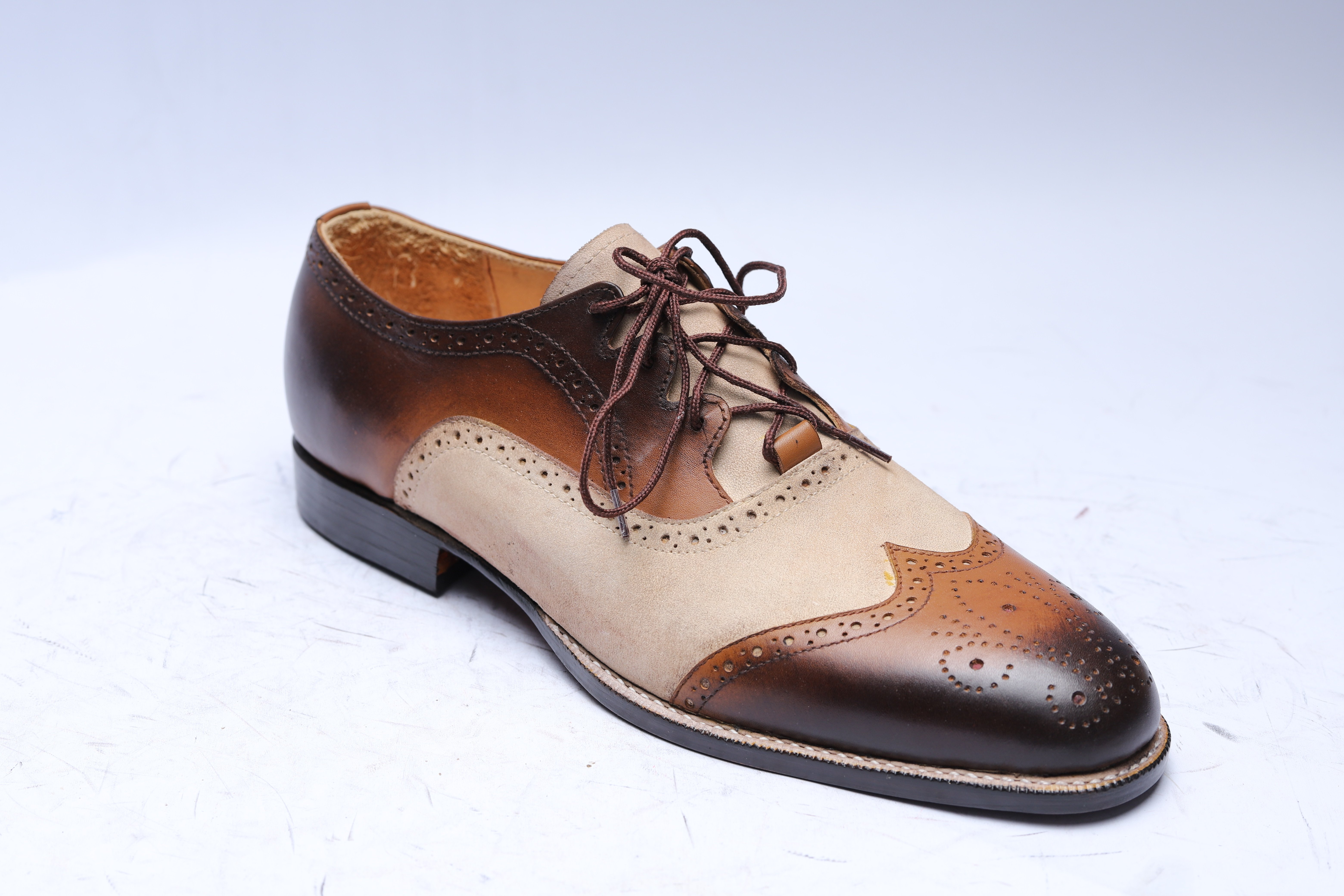 Crafted Leather Handmade Men Brown Suede Leather Lace up Dress Shoes