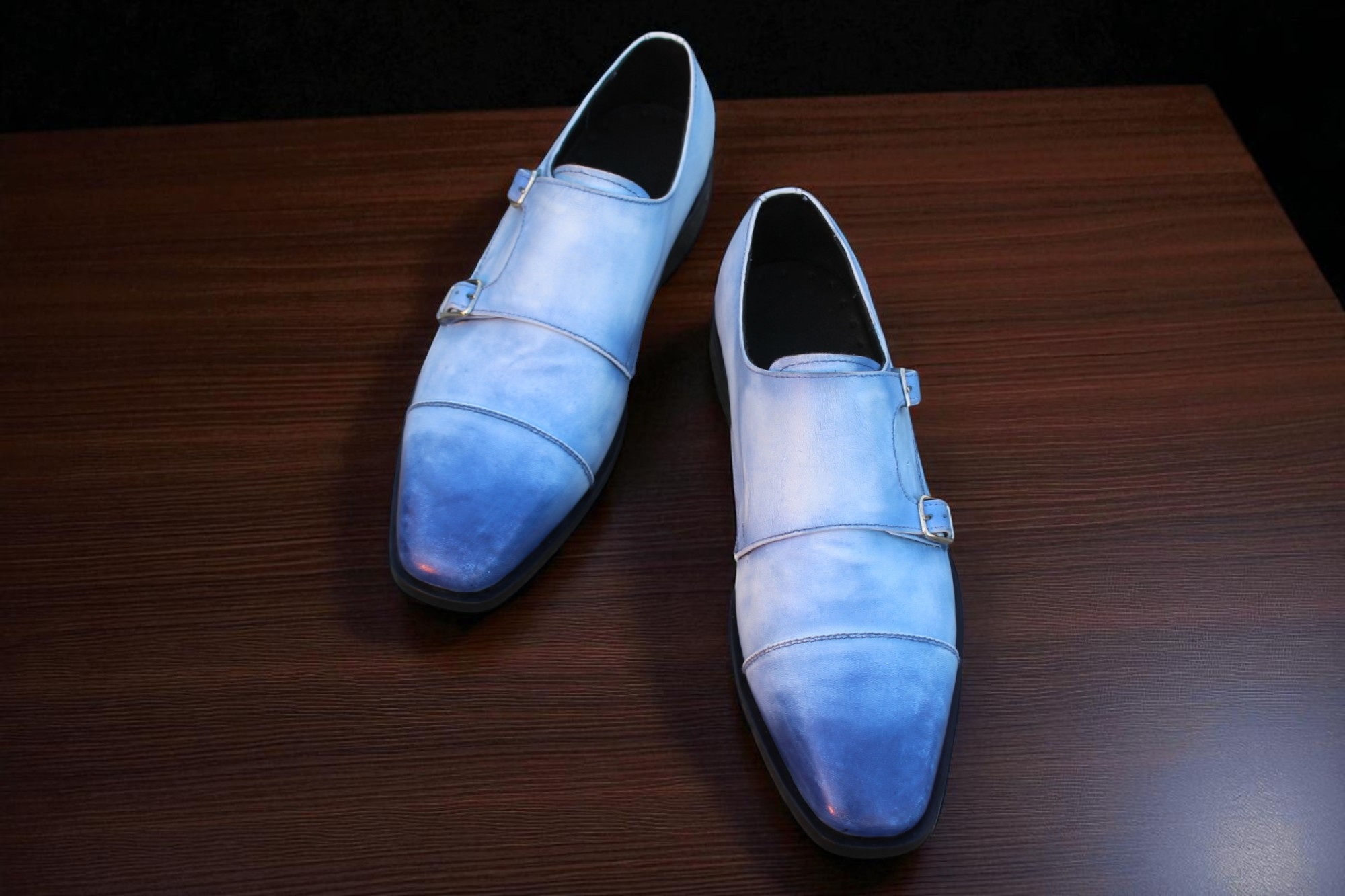 Crafted Leather Handmade Men Classic Blue Leather Monk Strap Dress Shoes