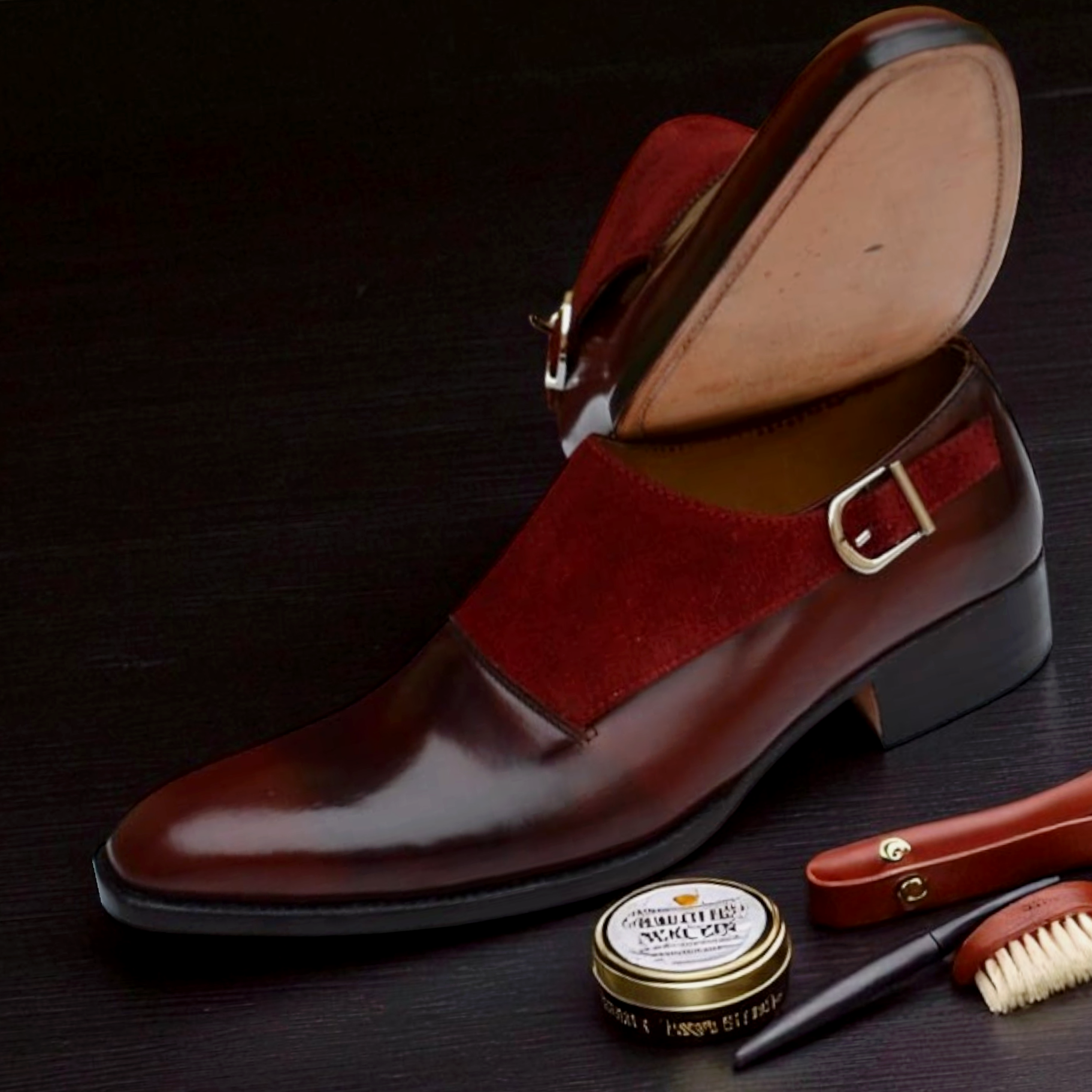 Crafted Leather Men Classic and Luxury Burgundy Patina Calf Suede Leather Monk Strap Dress Shoes