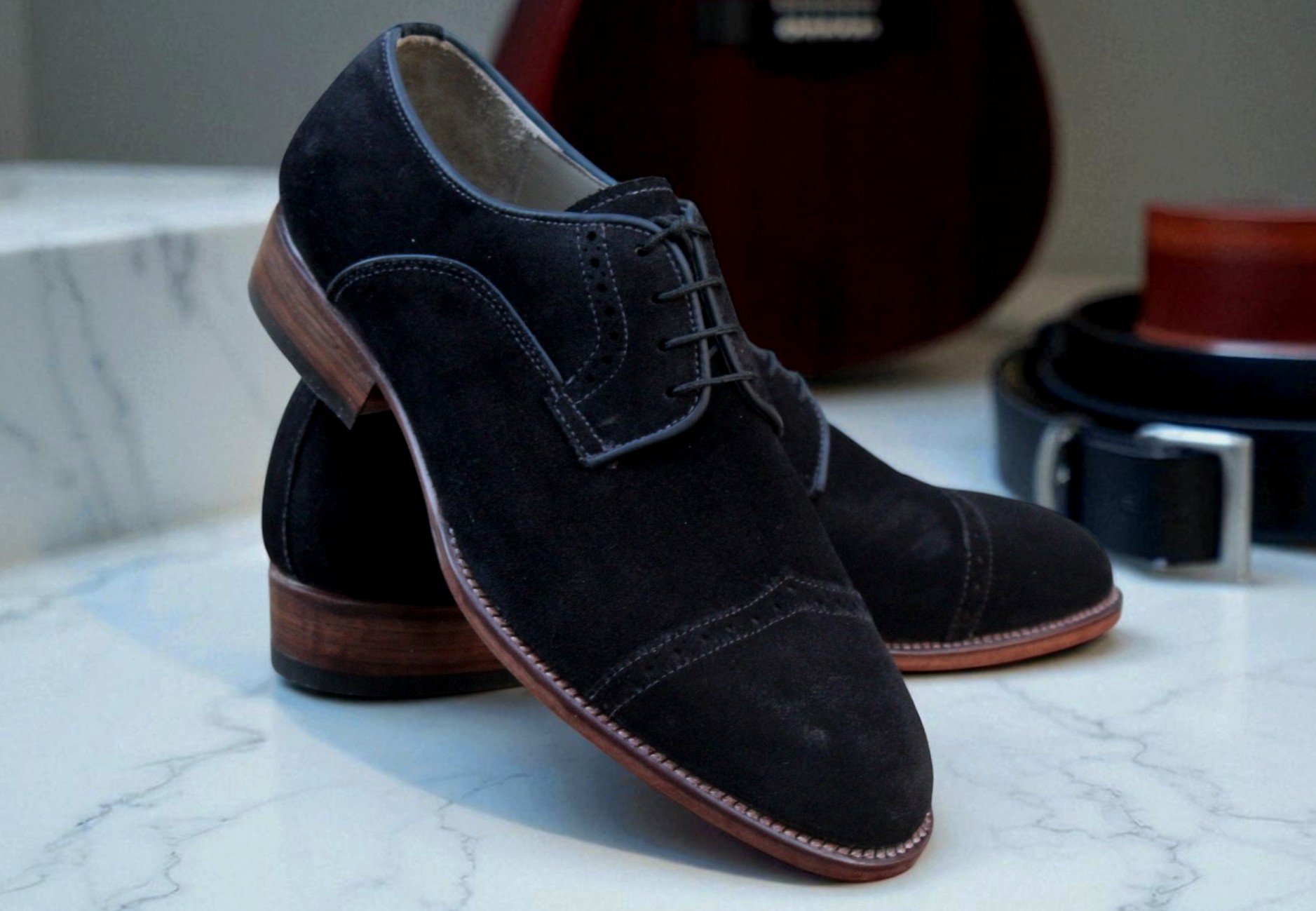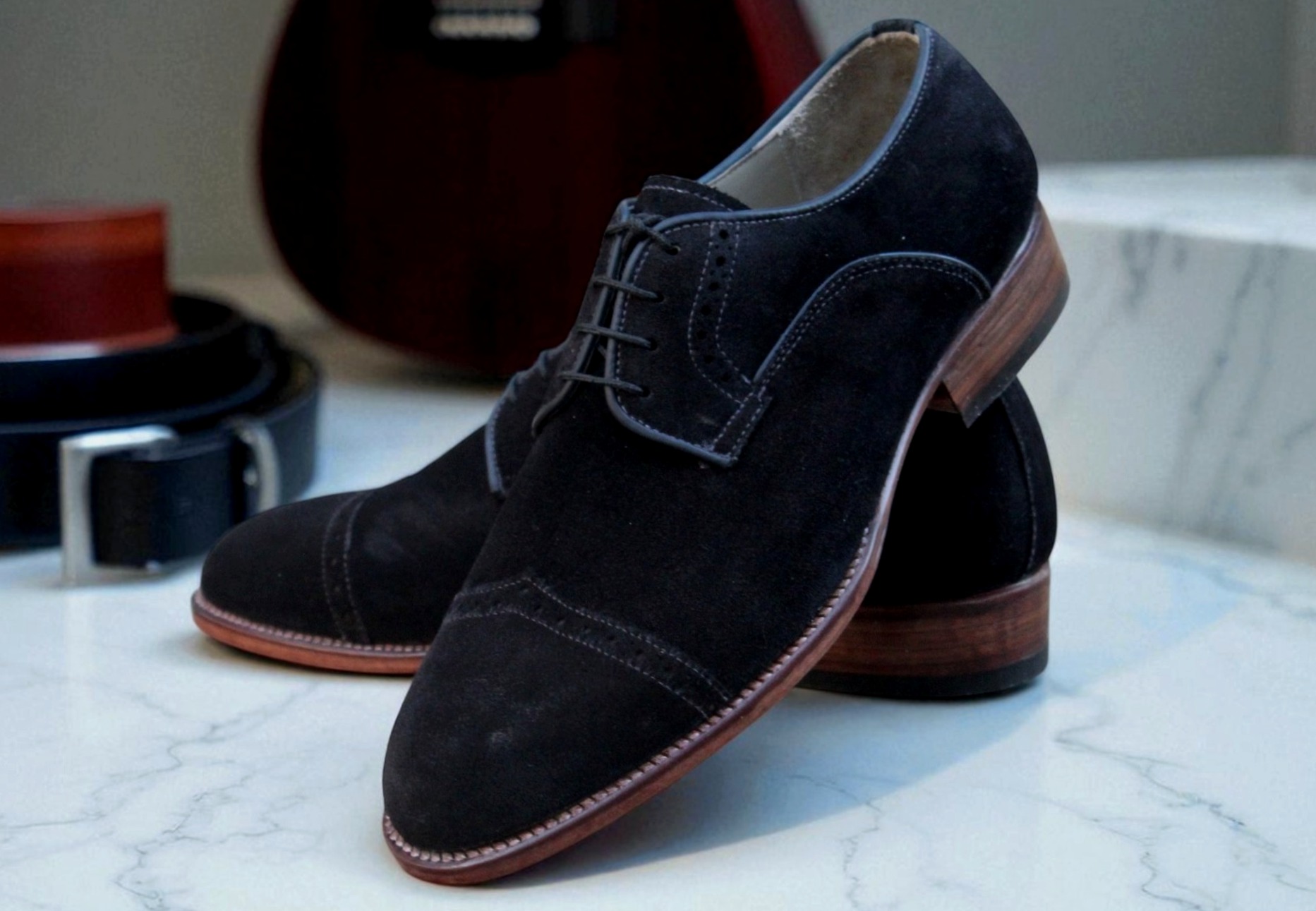 Crafted Leather Handmade Classic Black Suede Leather Oxford Lace up Dress Shoes