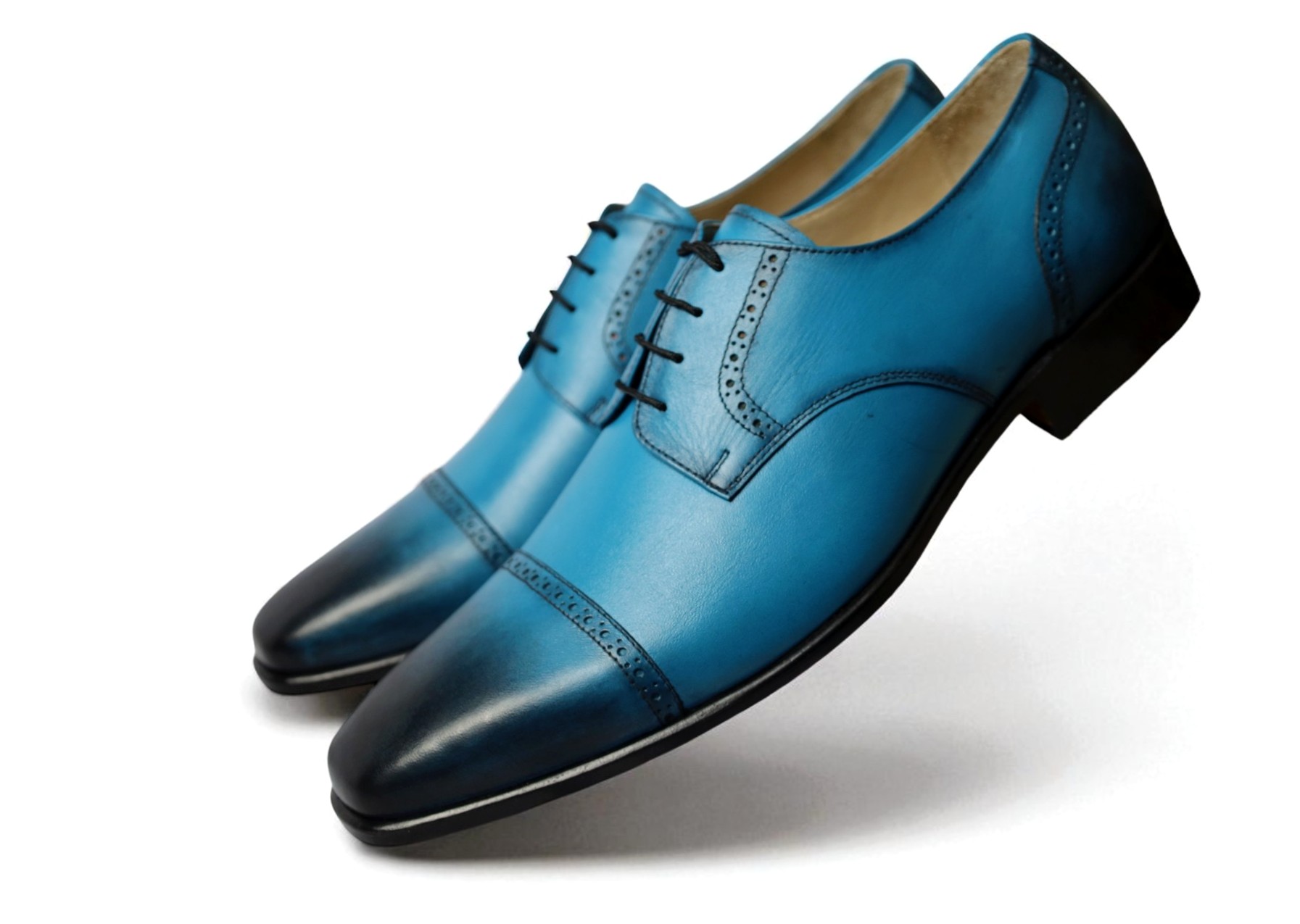 Crafted Leather Men Classic Blue Leather Oxford Lace up Dress Shoes