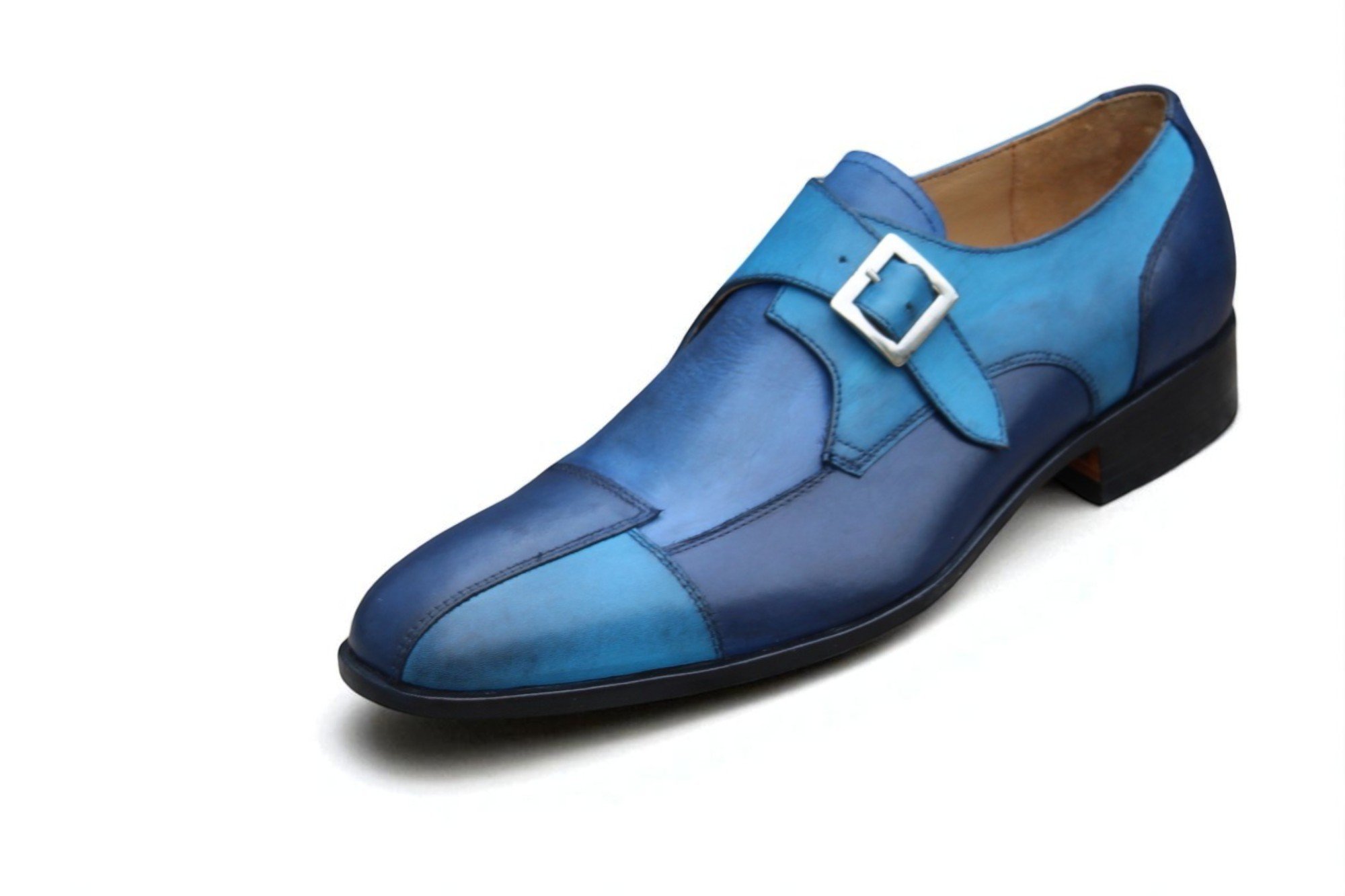 Crafted Leather Handmade Men Classic Blue Leather Monk Strap Dress Shoes