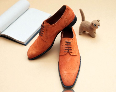 Crafted Leather Classic Tan Suede Wingtip Oxford Men Stunning Dress Lace up Shoes