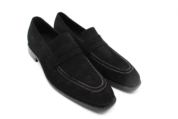 Crafted Leather Classic Black Suede Leather Moccasin Loafers Dress Shoes