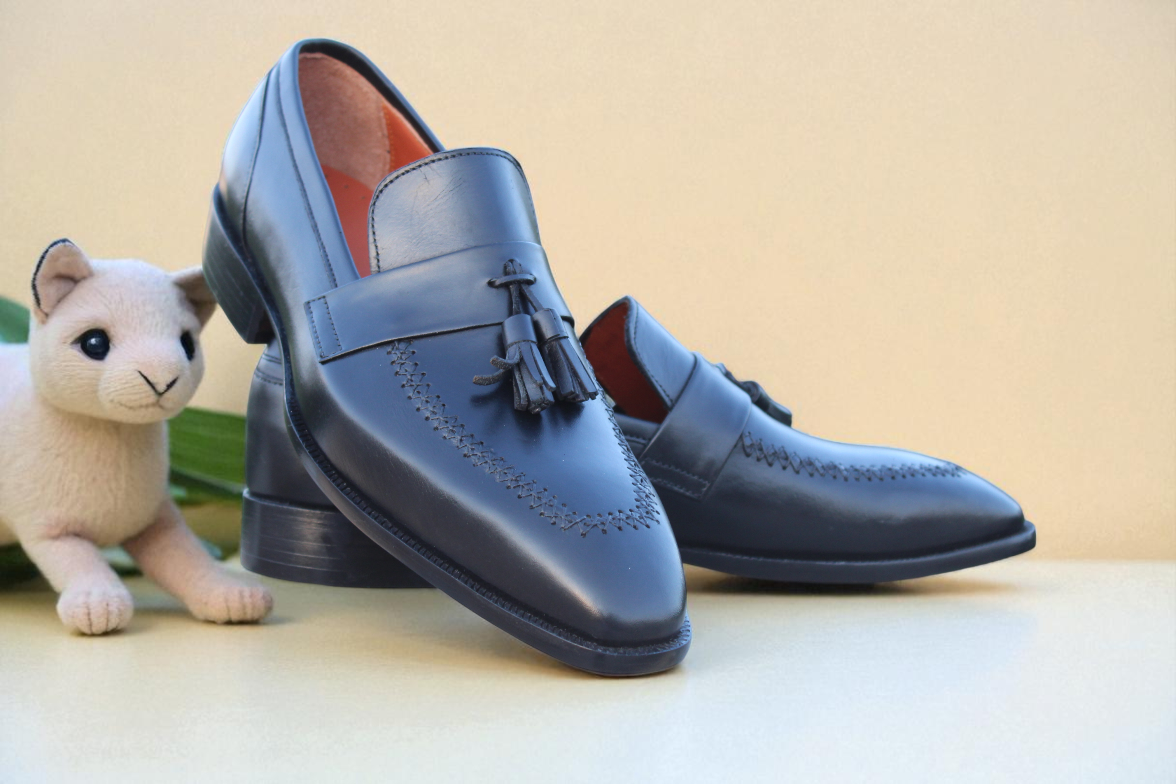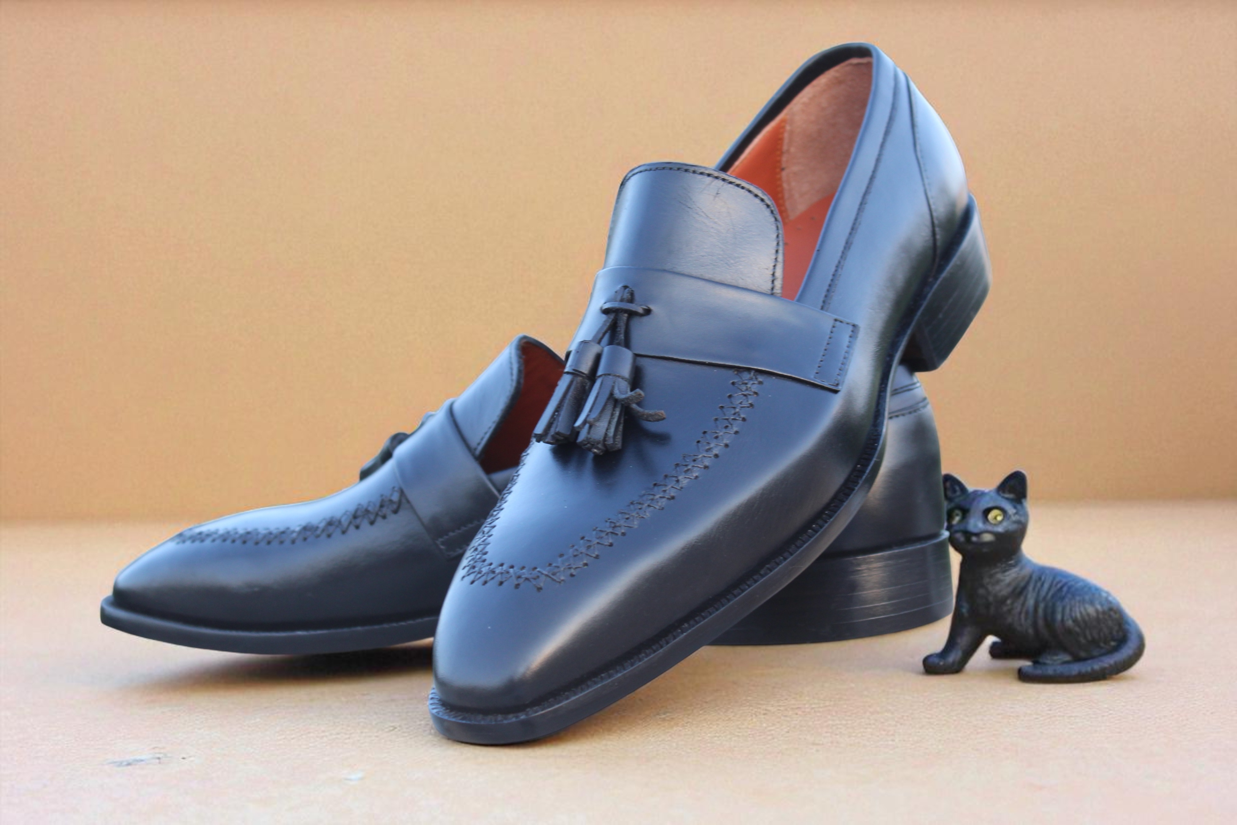 Inner: Soft Leather Sole: Rubber Sole Gender : Male Heel: Leather Color: Black Style: Tassel Loafers Shoes Totally Hand stitched Manufacturing time 7-10 business days If you can’t find your Size/Color just send us message we will make for you.