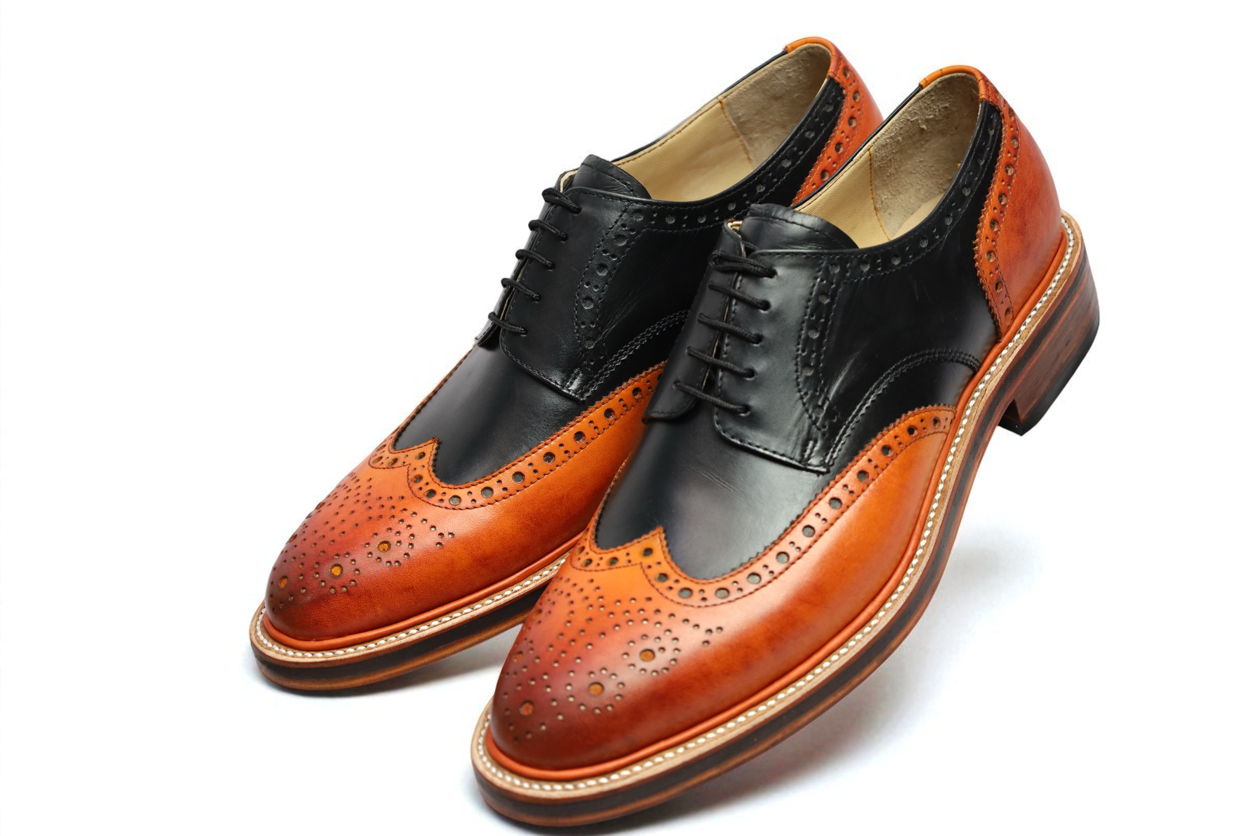 Crafted Leather Handmade Classic Brown Black Leather Wingtip Oxfords Dress Shoes