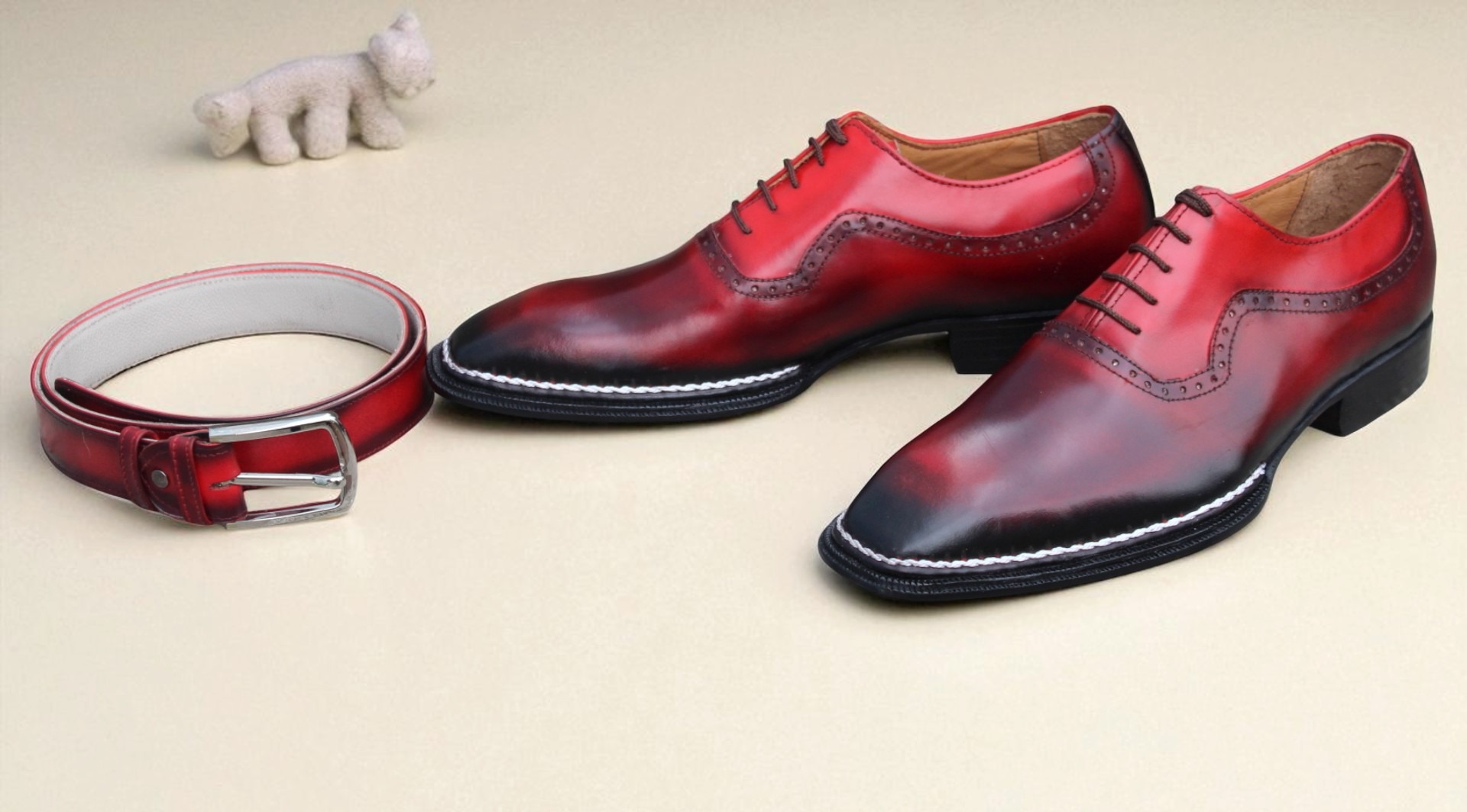 Crafted Leather Handmade Mens Burgundy Leather Dress Formal Shoes with Matching Belt