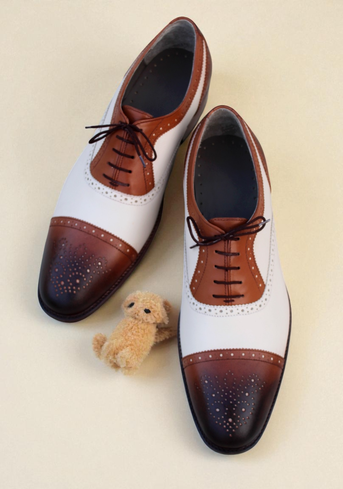 Crafted Leather Stunning Brown White Leather Dress Shoes