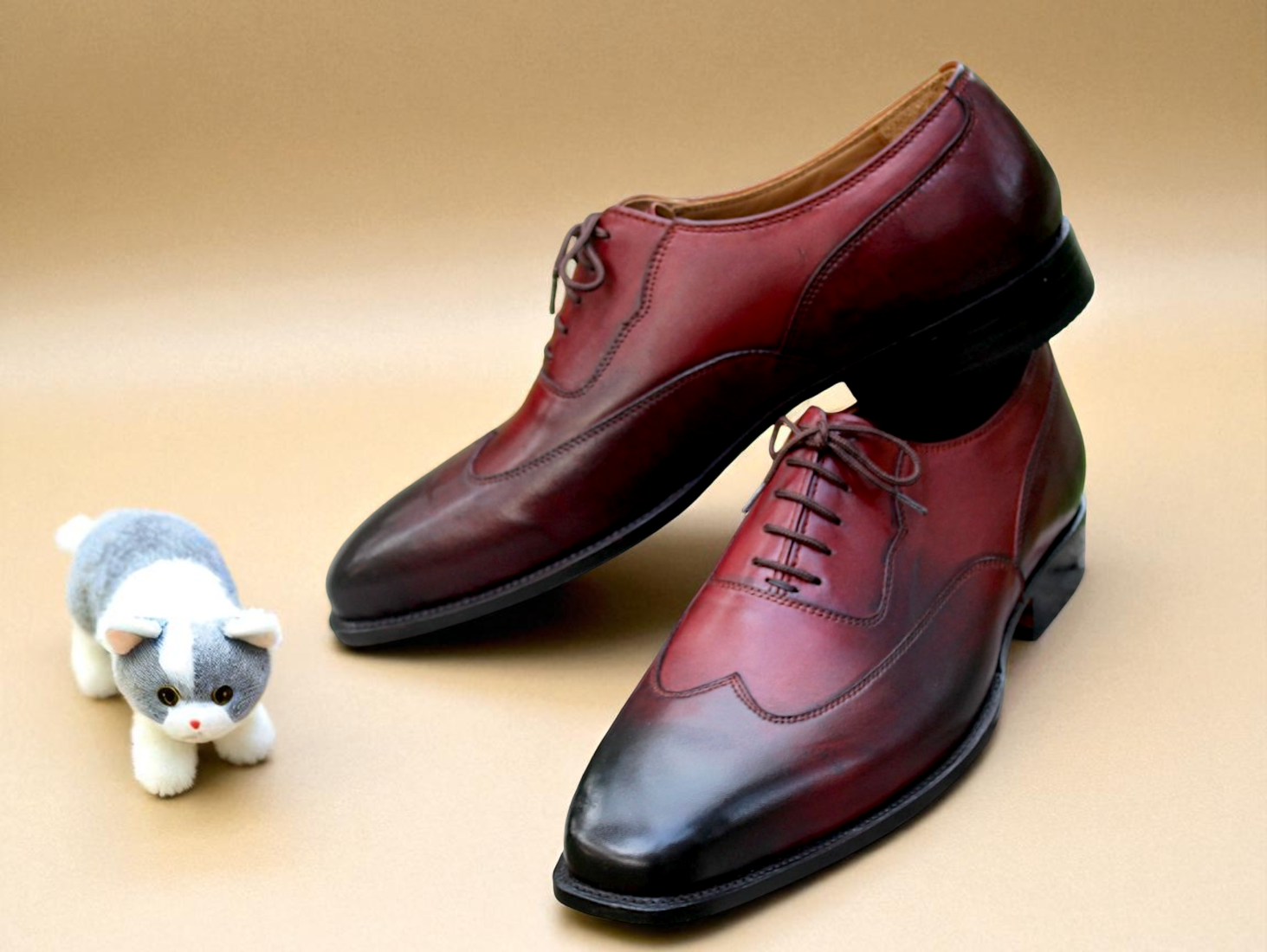 Inner: Soft Leather Sole: Leather Gender : Male Heel: Leather Color: Burgundy Black Style: Wingtip Dress Shoes Totally Hand stitched Manufacturing time 7-10 business days If you can’t find your Size/Colorjust send us message we will make for you.