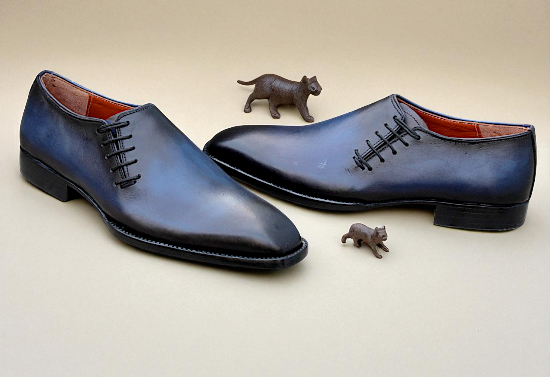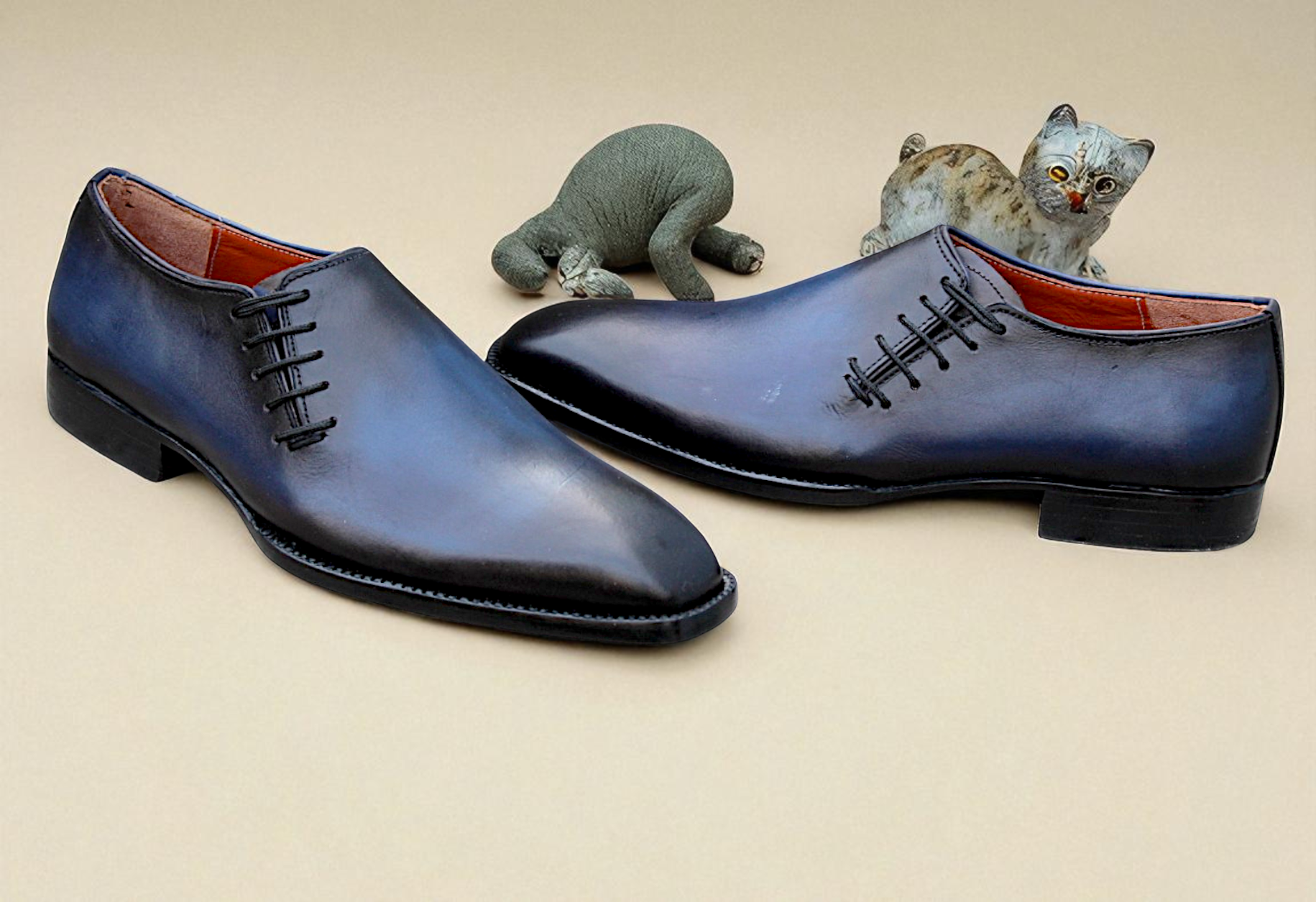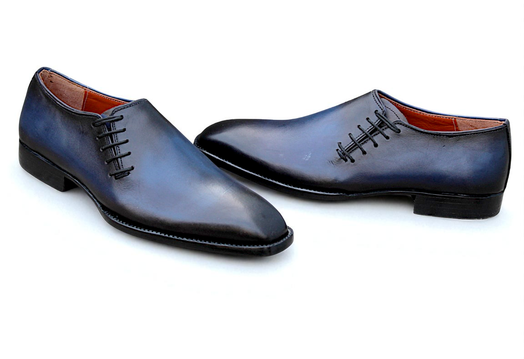 Crafted Leather Blue Leather Side Laces Oxford Dress Shoes