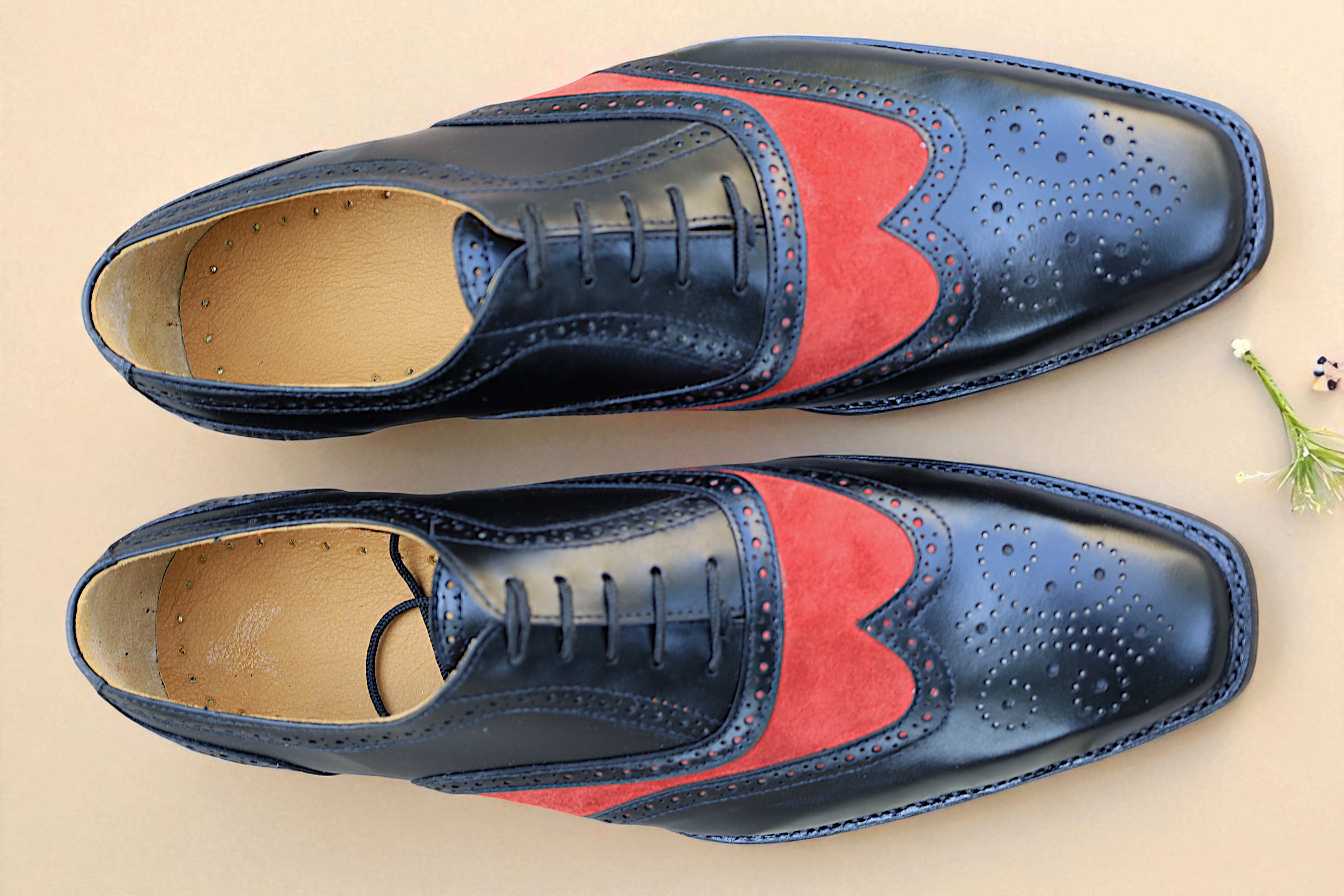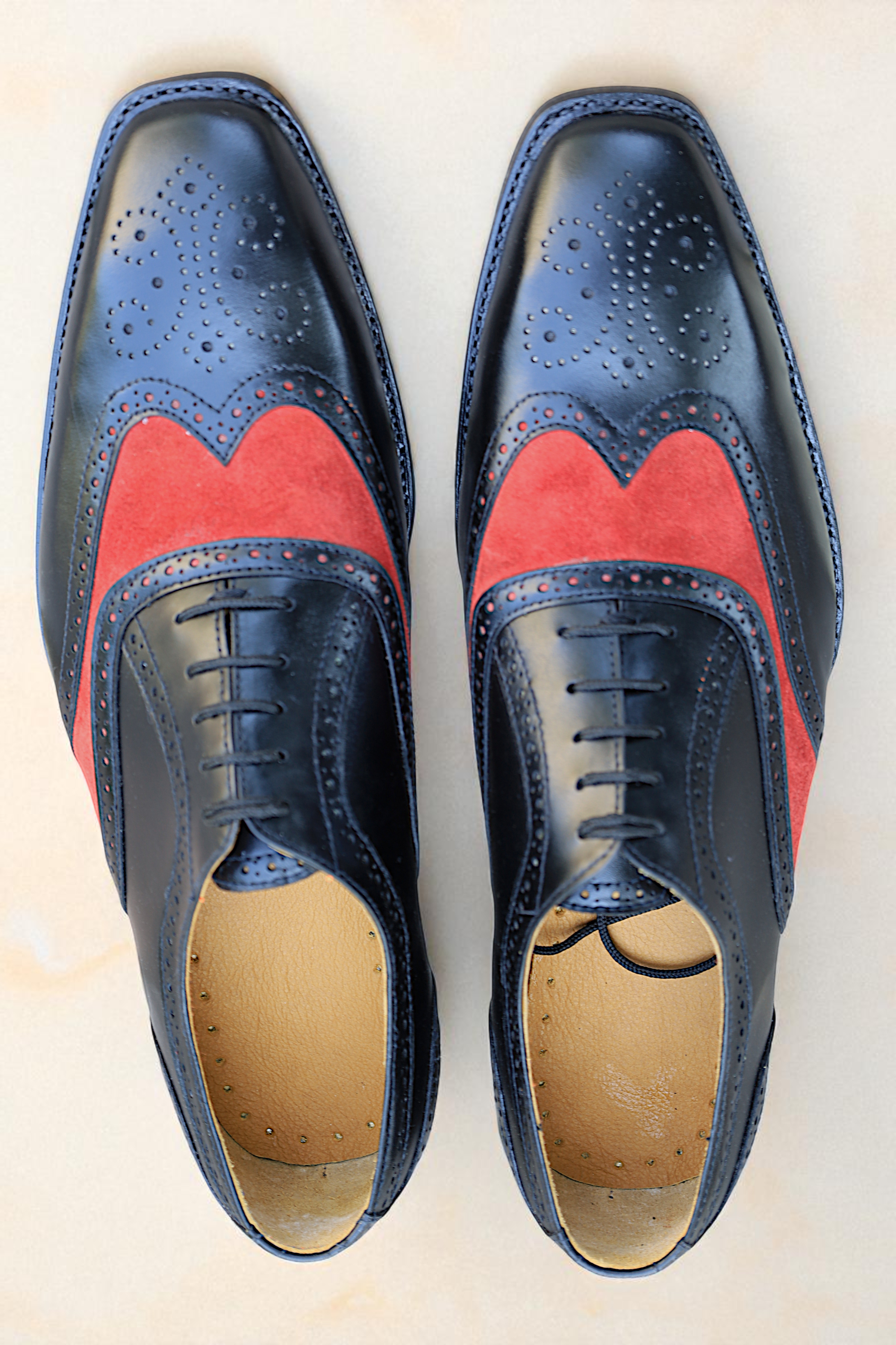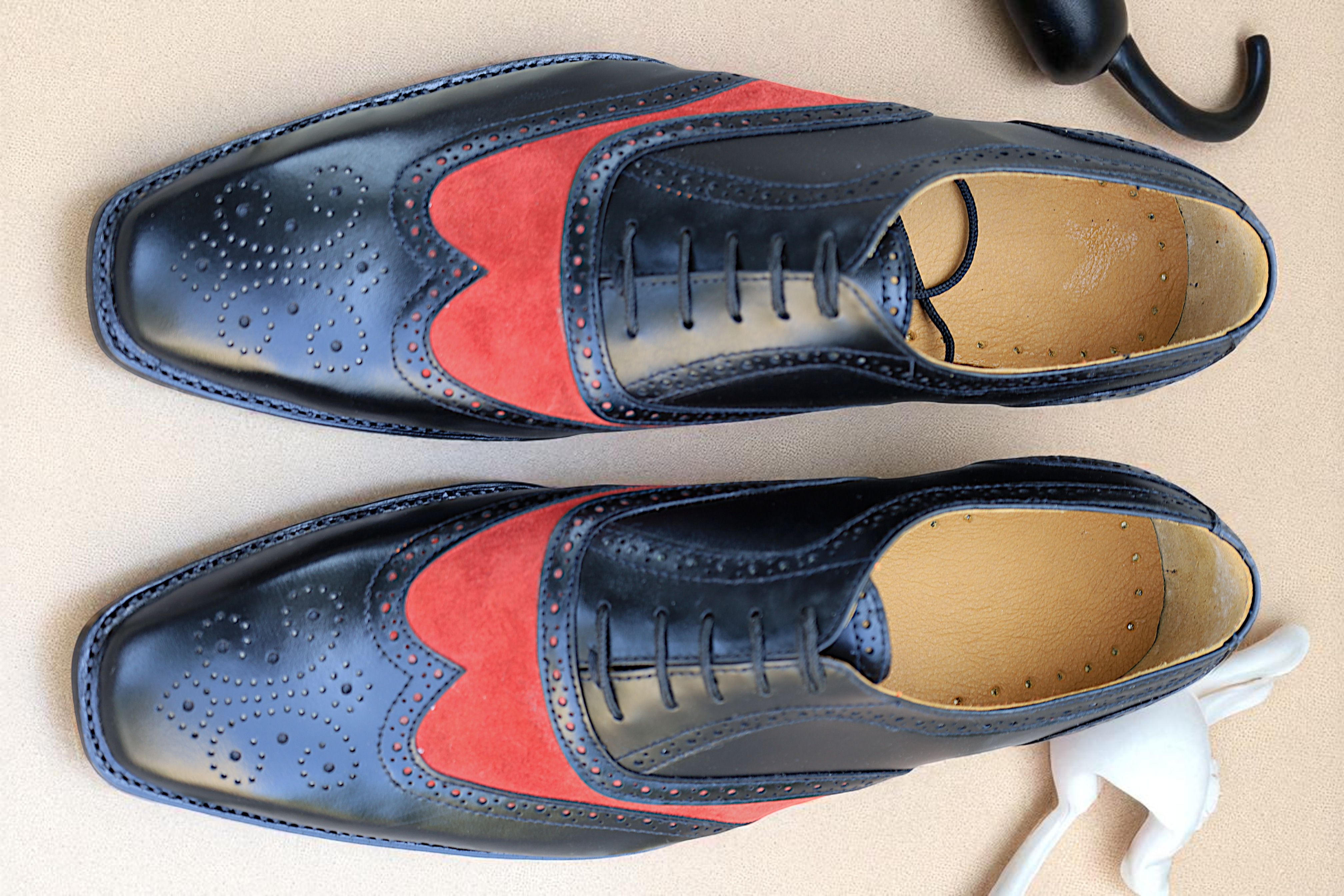 Crafted Leather Red Suede Black Leather Wingtip Oxford Lace up Formal Dress Shoes
