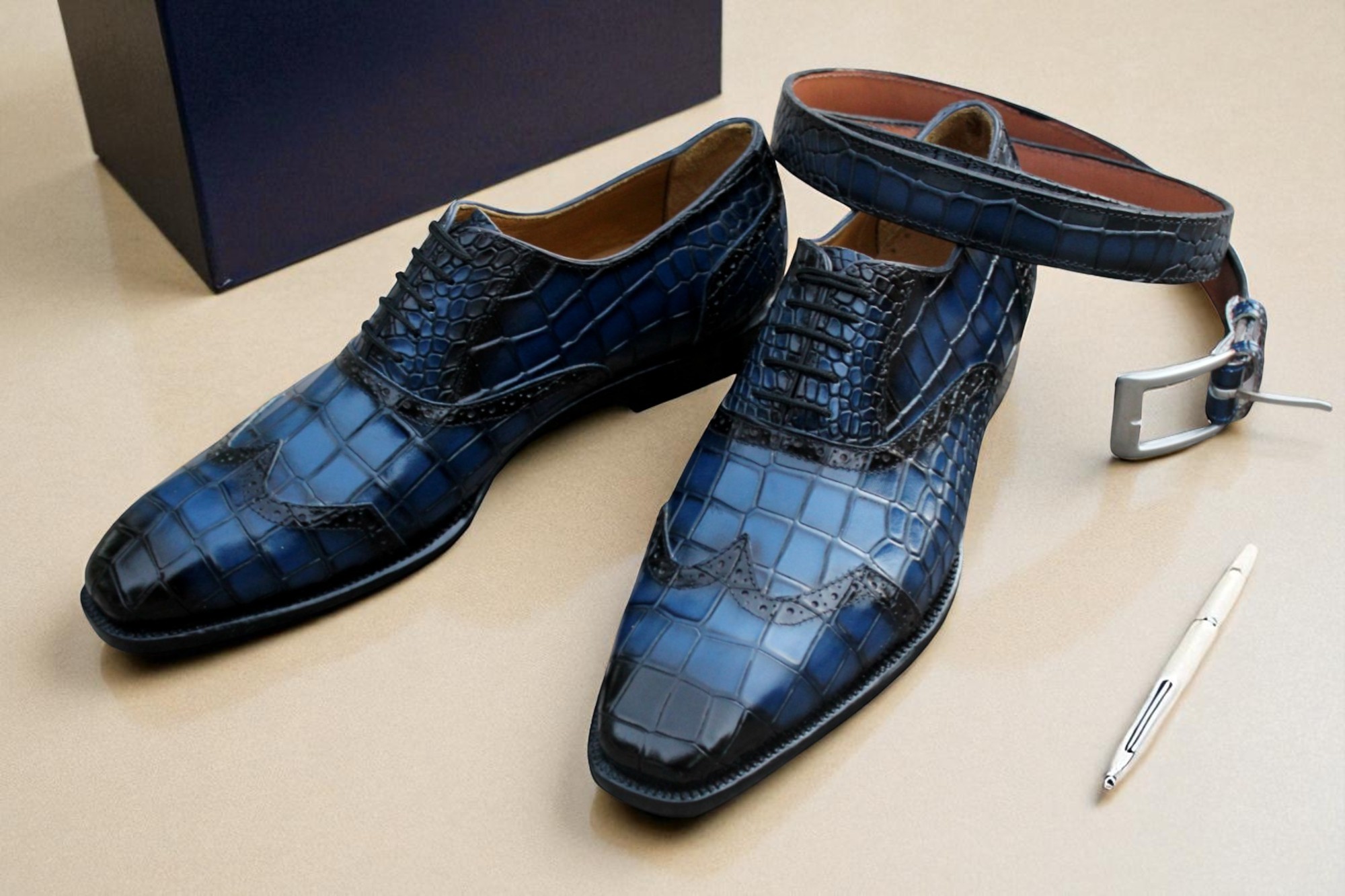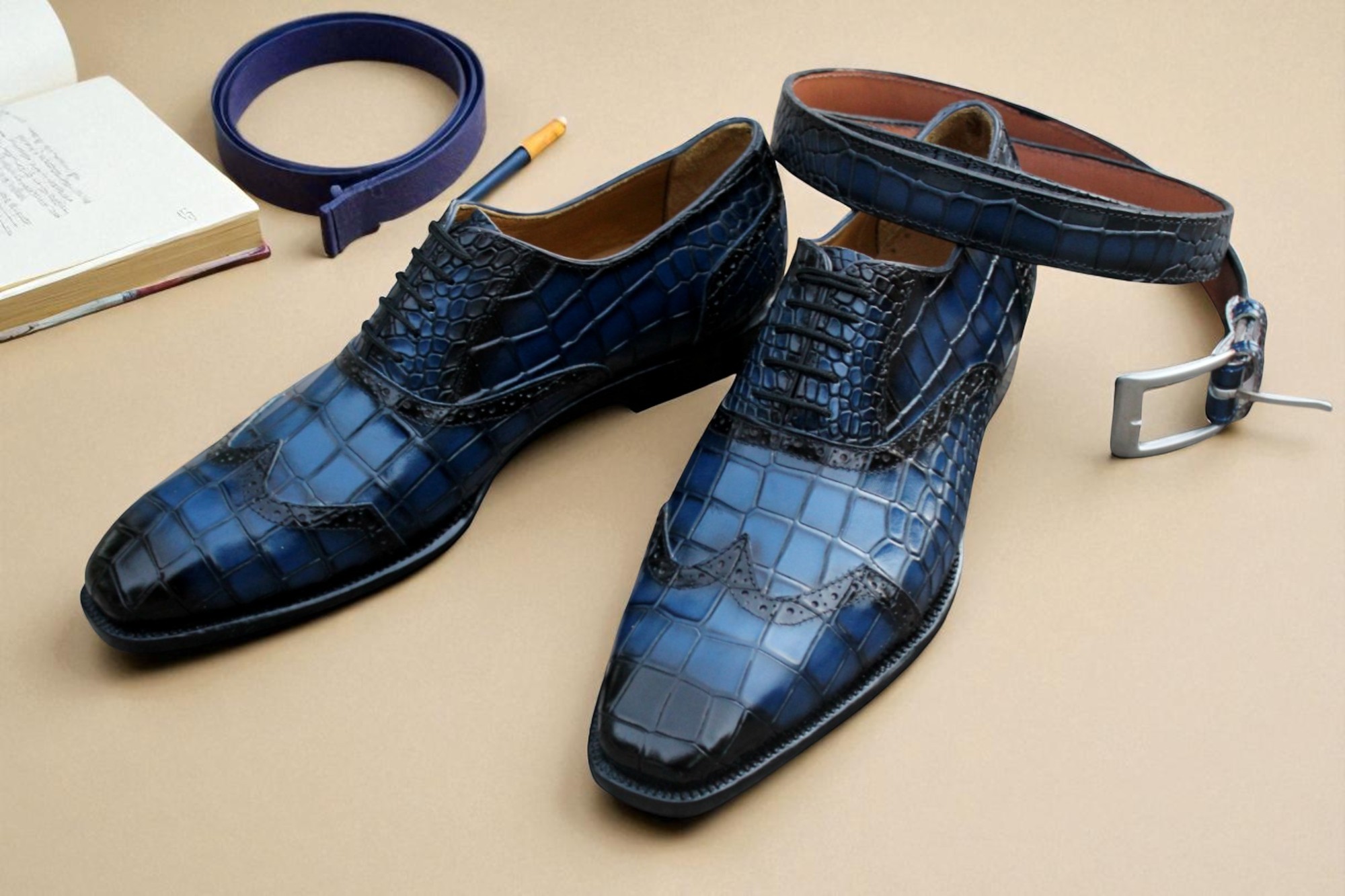 Crafted Leather Blue Crocodile Leather Alligator Dress Shoes