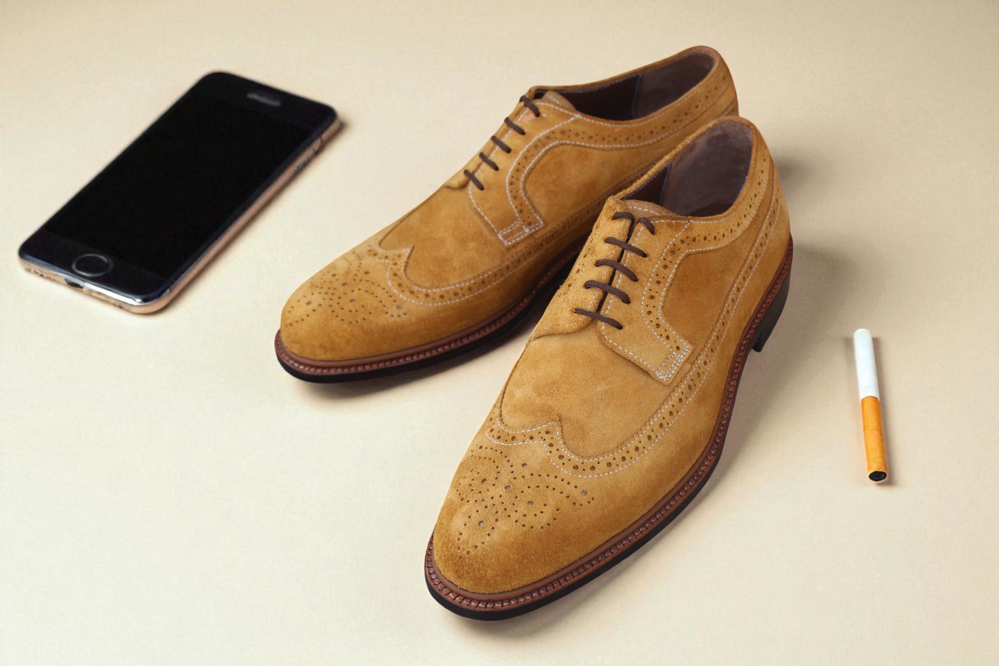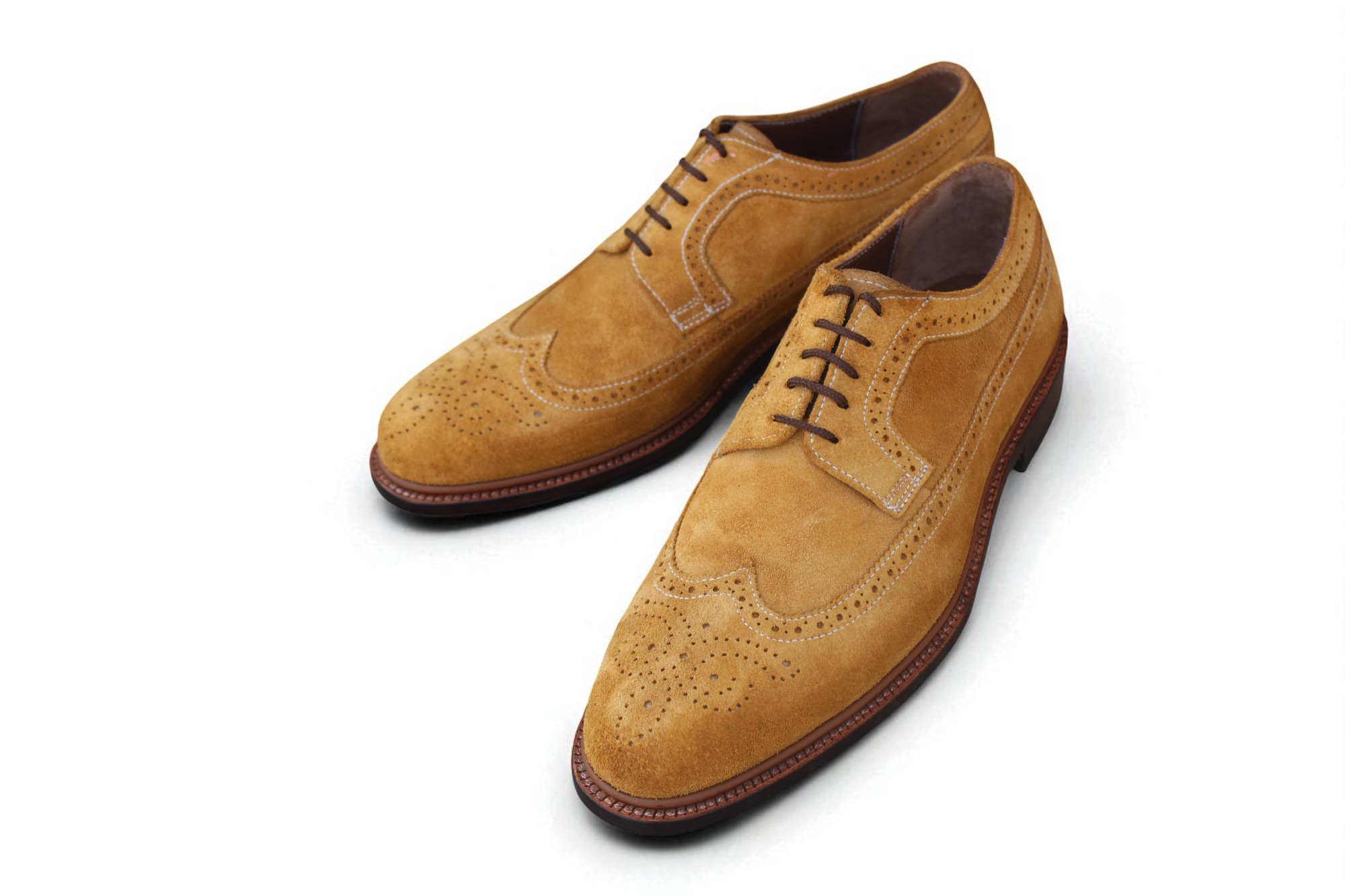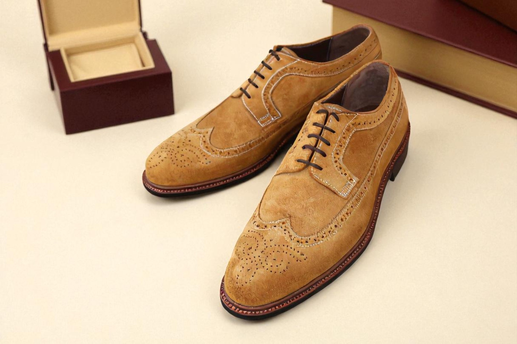 Crafted Leather Brown Suede Leather Wingtip Oxford Lace up Dress Shoes