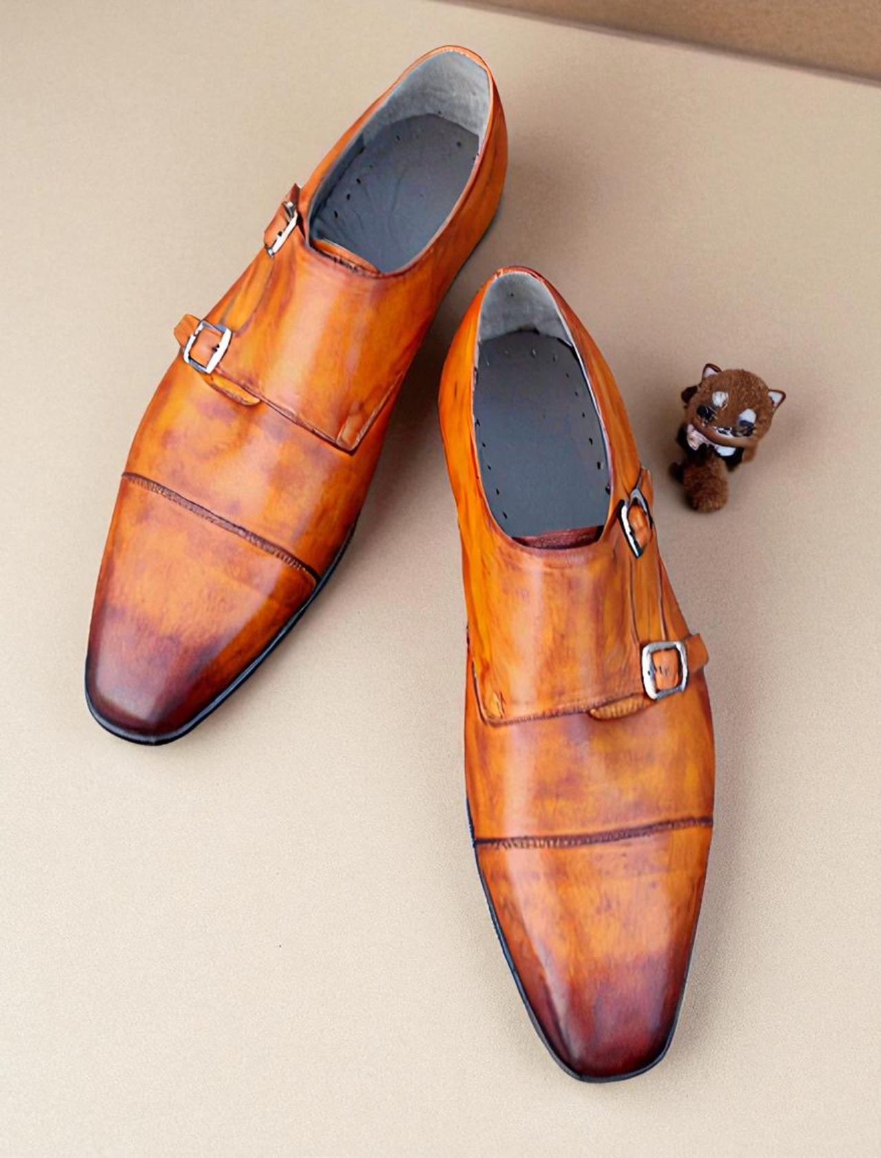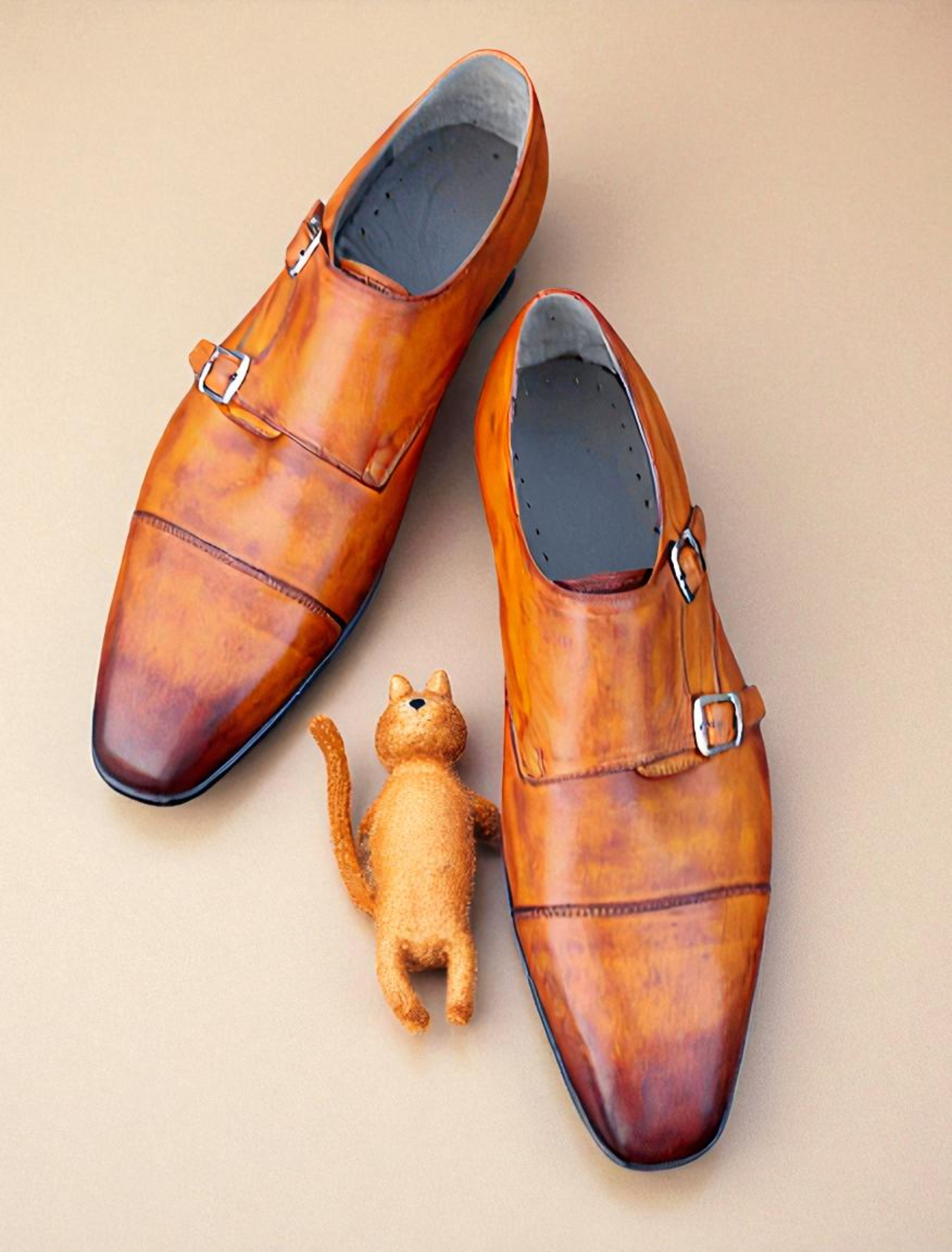 Crafted Leather Brown Leather Monk Strap Dress Shoes