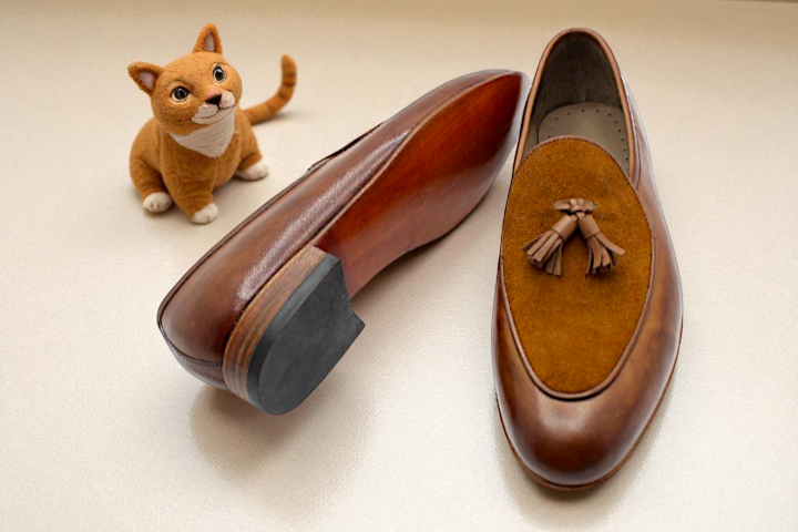 Crafted Leather Brown Suede Leather Tassel Loafers Dress Shoes