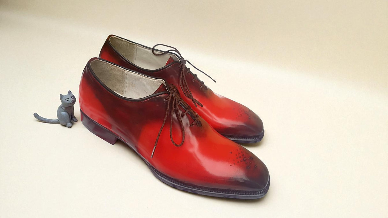 Crafted Leather Elegant and Classic Men Red Patina Black Shaded Leather Oxford Lace up Dress Shoes