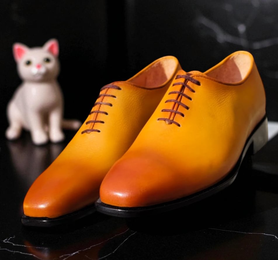 Crafted Leather Classic Men Tan Patina Leather Formal Oxford Lace up Dress Shoes