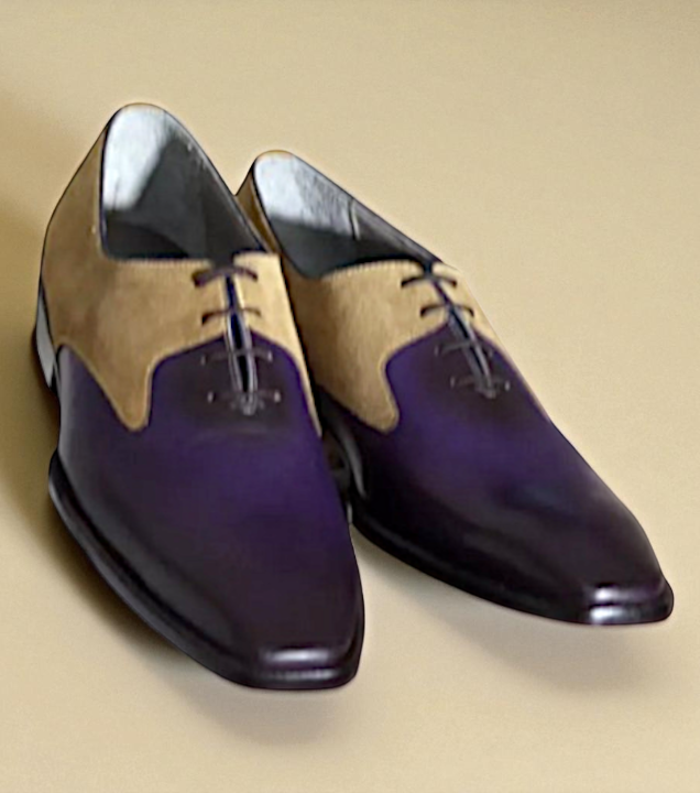 Crafted Leather Classic Men Blue Beige Suede Leather Oxford Lace up Dress Shoes
